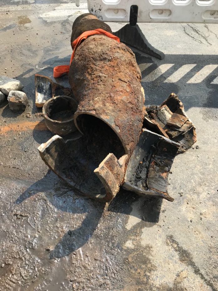 Tak wygląda usunięta z wykopu uszkodzona rura.