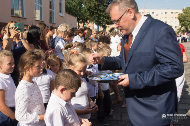 Dyrektor Tomasz Szewczyk przypomniał, że przed wakacjami było ponad 150 wzorowych uczniów. – Liczę, że w tym roku będzie ich 200 – zaznaczył. – Czeka nas egzamin ostatniej klasy gimnazjum, ale i pierwszy egzamin ósmoklasistów. Z tego powodu uruchomimy dodatkowe zajęcia z fizyki i chemii. Żeby wszyscy byli dobrze przygotowani.