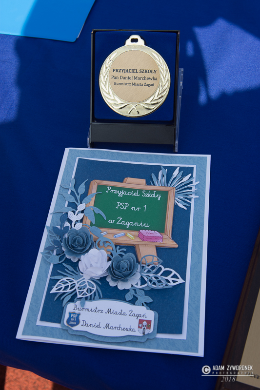 PSP 2 młodszych i starszych uczniów przywitali nauczyciele wraz z dyrektorka Beatą Purwiel, Z. Białkowskim, Zofią Zawadzką – prezesem ZNP oraz majorem Tomaszem Siemionem, reprezentującym 11 Lubuską Dywizję Kawalerii Pancernej, czyli patrona szkoły.