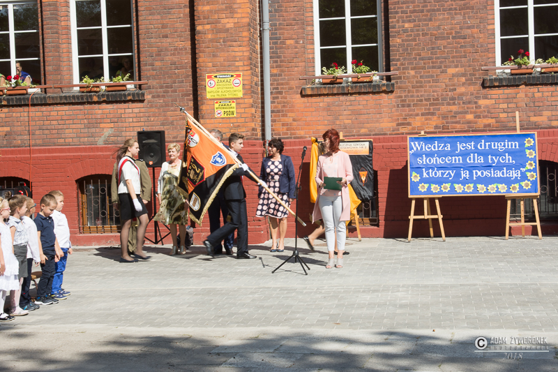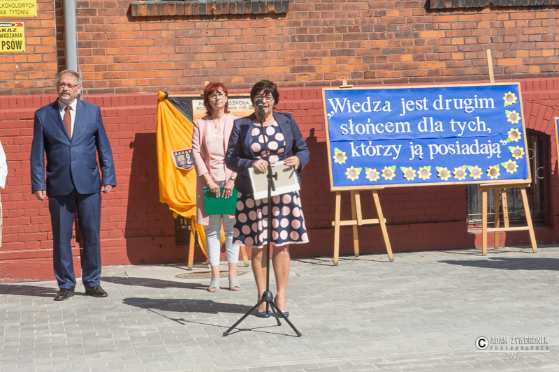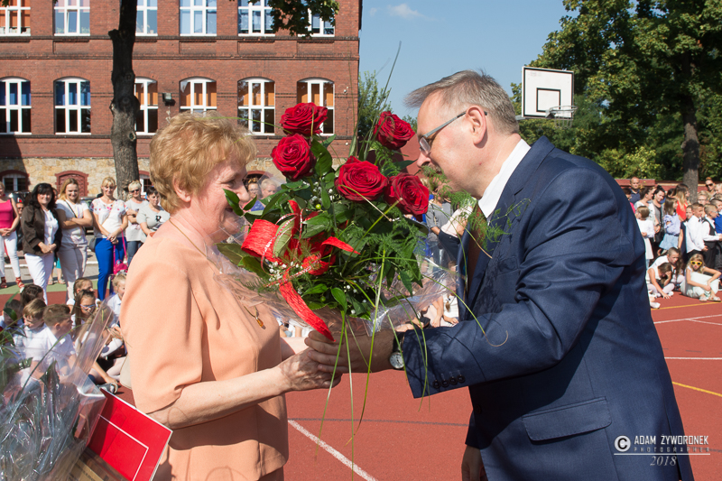 W PSP 1 dyrektor Małgorzata Kalinowska wraz z uczniami i pracownikami pożegnała długoletnie pracownice, które odeszły na emeryturę: Janinę Jurgę z biblioteki, Krystynę Olszewską z sekretariatu i matematyczkę Danutę Szwarc. Przywitała grupę nauczycieli, którzy w tym roku podejmują pracę w PSP 1.