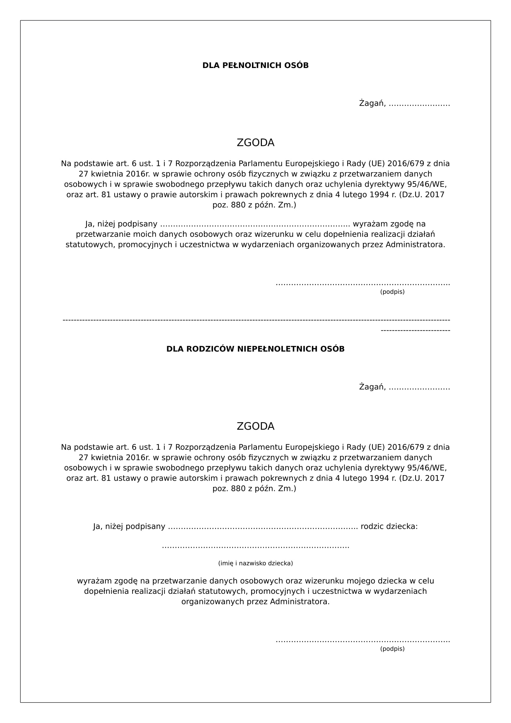 Konieczne jest wypełnienie i podpisanie załączonej zgody (RODO).