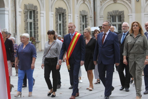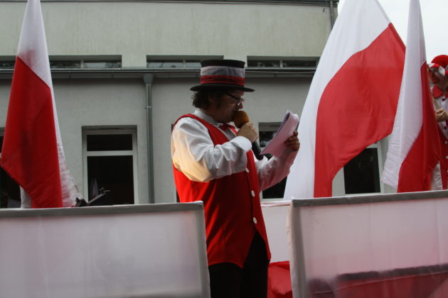 W korowodzie z ul. Mickiewicza, pod scenę na podzamczu w parku wyruszyły władze miasta, przedstawiciele Cechu Rzemiosł Różnych, stowarzyszeń, szkół, motocykliści, szczudlarze i mieszkańcy miasta. Pochodowi towarzyszyła trupa teatralna w narodowych barwach.
