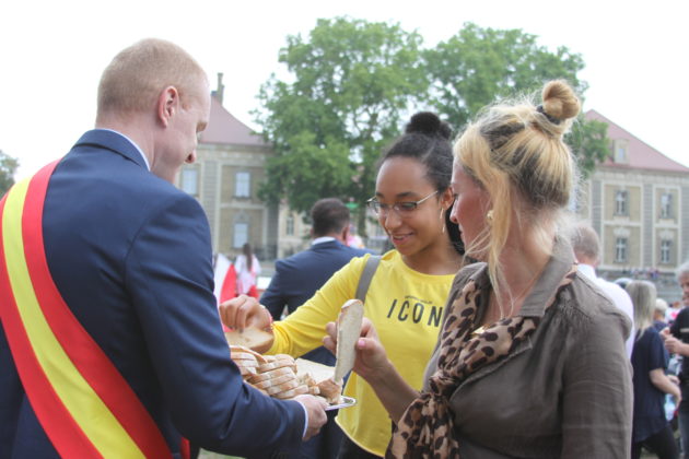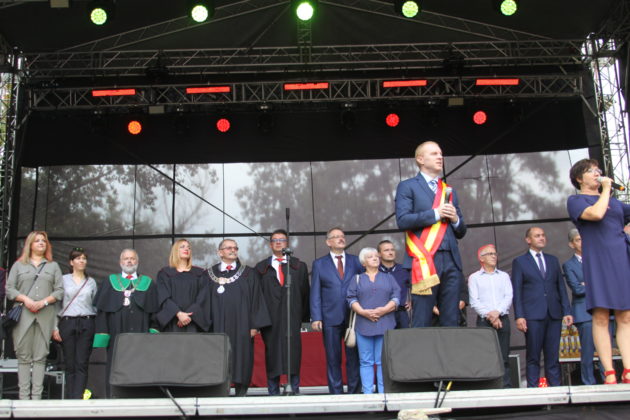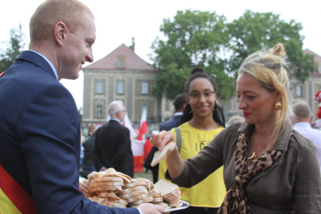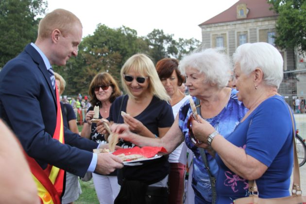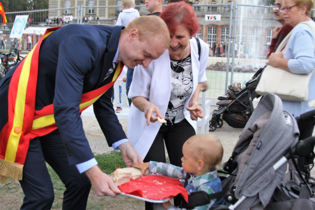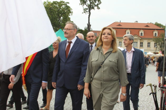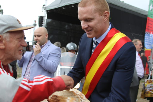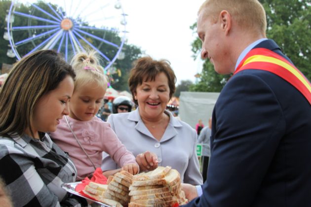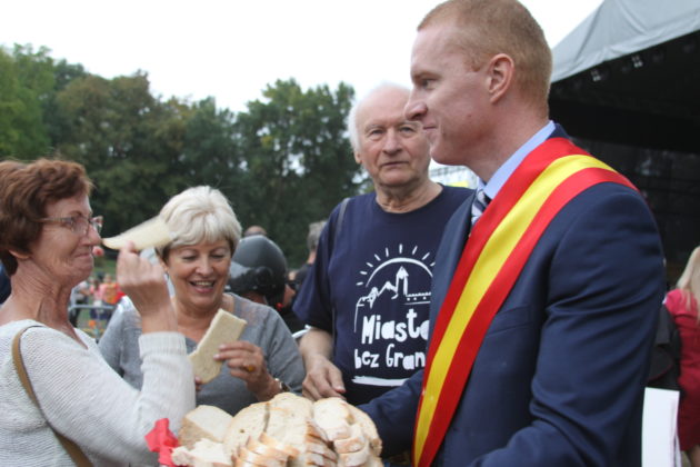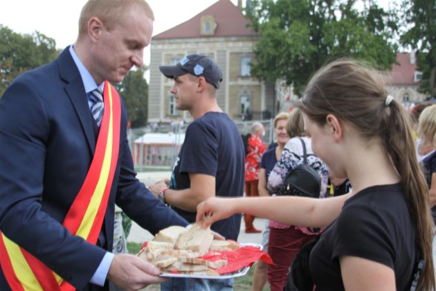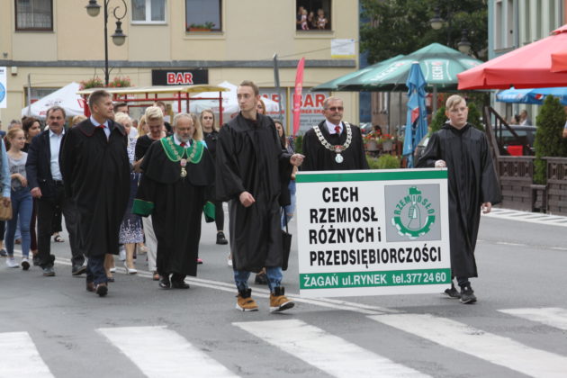 Parada przeszła ulicami Żagania, następnie przez główną bramę pałacu, dziedziniec i podjazd, pod scenę. Tam otworzył imprezę burmistrz Daniel Marchewka, który przyjął i ucałował chleb od żagańskich rzemieślników, którym wraz z Wandą Winczaruk, przewodniczącą Rady Miasta Żagań podzielił się z mieszkańcami miasta i gośćmi.