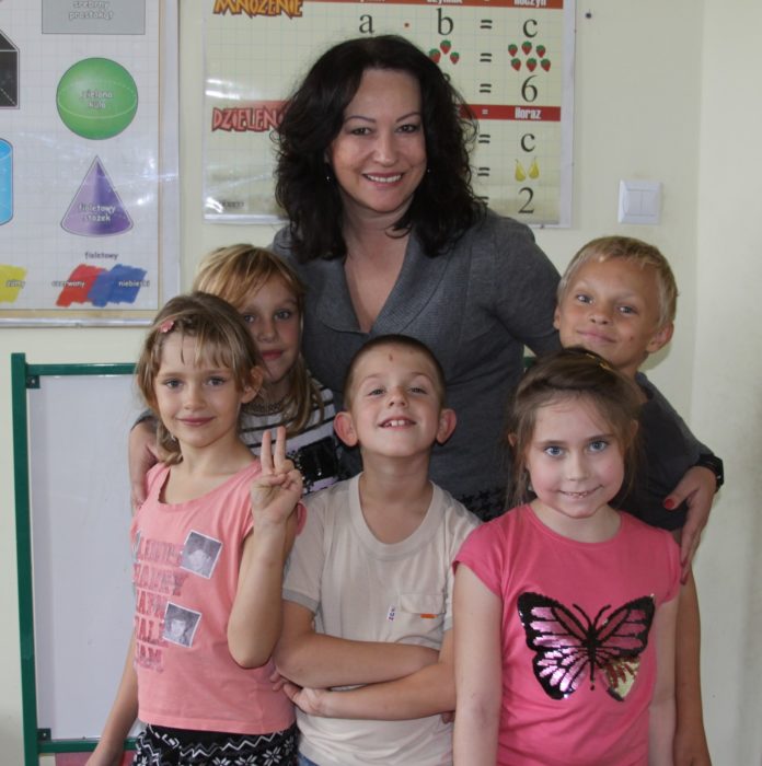 Renata Socha z dziećmi z klasy II szkoły podstawowej w SOSW.