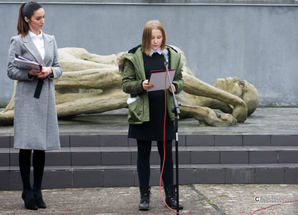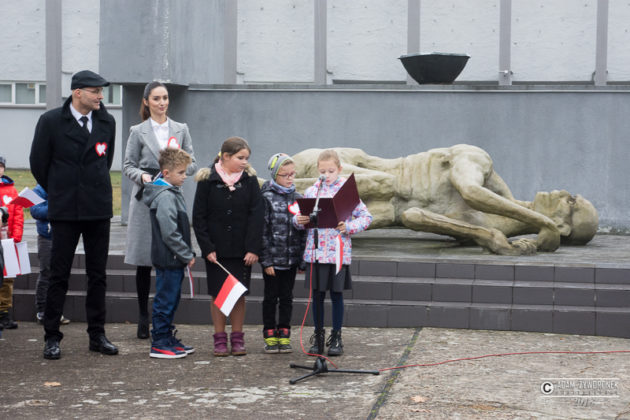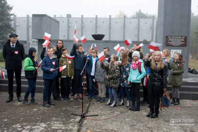Uczniowie Publicznej Szkoły Podstawowej nr 4 zaśpiewali patriotyczne pieśni pod pomnikiem przy Muzeum Obozów Jenieckich.