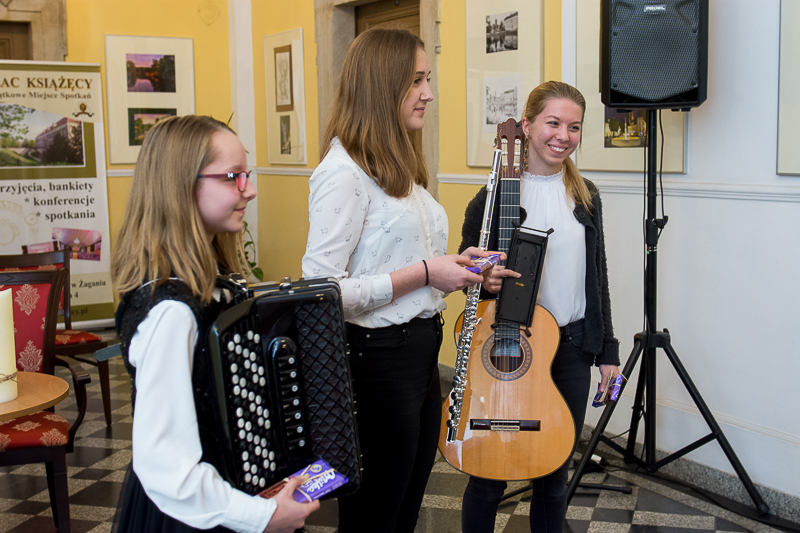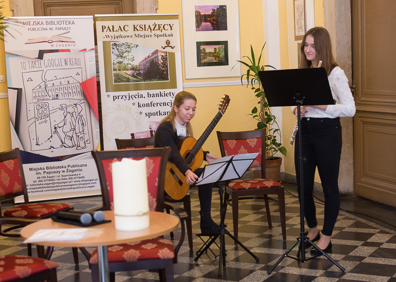 7 grudnia 2018 r. w Pałacu Książęcym w Żaganiu odbyło się uroczyste zakończenie wystawy “Przenikanie sztuk” zorganizowanej przez Miejską Bibliotekę Publiczną. Wystawa prezentuje fotografie Jana Mazura oraz inspirowane nimi obrazy Panagiotisa Karagiorgisa. Wszystkie prace przedstawiają żagański park pałacowy w różnych sceneriach, których klimat tworzy światło przenikające przestrzeń o różnych porach dnia i nocy, w deszczu i we mgle. Choć obrazy Panagiotisa Karagiorgisa zainspirowane są fotografiami Jana Mazura i wzajemnie przenikają się, to nie stanowią ich wiernego odzwierciedlenia. Imprezę dodatkowo wzbogacił występ uczniów PSM I i II st. w Żaganiu. Na akordeonie zagrała Daria Leszcz -uczennica Oleny Moroz, a w duecie przygotowanym przez Adama Mikulskiego zagrały: Kornela Eliasz-Przygoda – gitara i Agata Sobczak – flet.