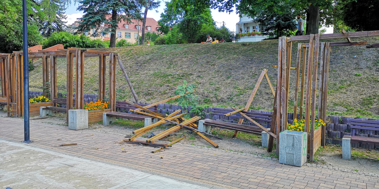 Te zdjęcia pokazują, jakim żywiołom ulegają drewniane konstrukcje oraz ławki na naszym bulwarze nad Bobrem. Z powodów bezpieczeństwa zdewastowane elementy zostaną rozebrane, zniszczone ławki naprawione. Warto jednak przy tej okazji po raz kolejny zaapelować o wspólną troskę o Żagań.