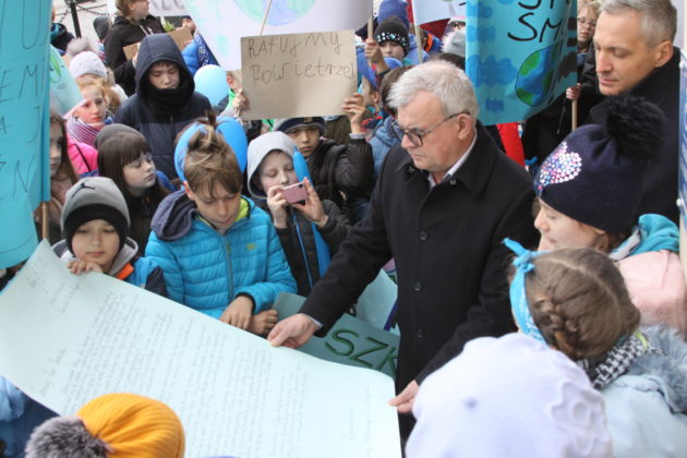 Zrezygnowaliśmy z lekcji w szkole, żeby nas usłyszano poza jej murami. Stoimy tu z transparentami, by nas zobaczono. Niebieski kolor to kolor naszej planety i nieba, które niestety – stają się szare i zadymione. Podobno jesteśmy przyszłością narodu, ale jeśli zrujnujemy dziś środowisko, nie będziemy mieli żadnej przyszłości. Podobno rodzice pożyczają Ziemię od swoich dzieci – co nam oddacie? Zmiany muszą się zacząć już teraz, nie możemy czekać. Planeta nie może czekać. Te słowa odczytały dzieci, które postanowiły dzisiaj przyłączyć się do ogólnoświatowego protestu. Burmistrz Andrzej Katarzyniec zapewnił, że problemy środowiska są bliskie władzom Żagania, a głos najmłodszych mieszkańców ma ogromną wartość. Zastępca burmistrza Sebastian Kulesza zaproponował również, aby każdy z nas dbał o środowisko. Aby zawsze, kiedy mamy taką możliwość, wybrać rower zamiast samochodu. To również od naszych wyborów i działań zależy los niebieskiej planety.