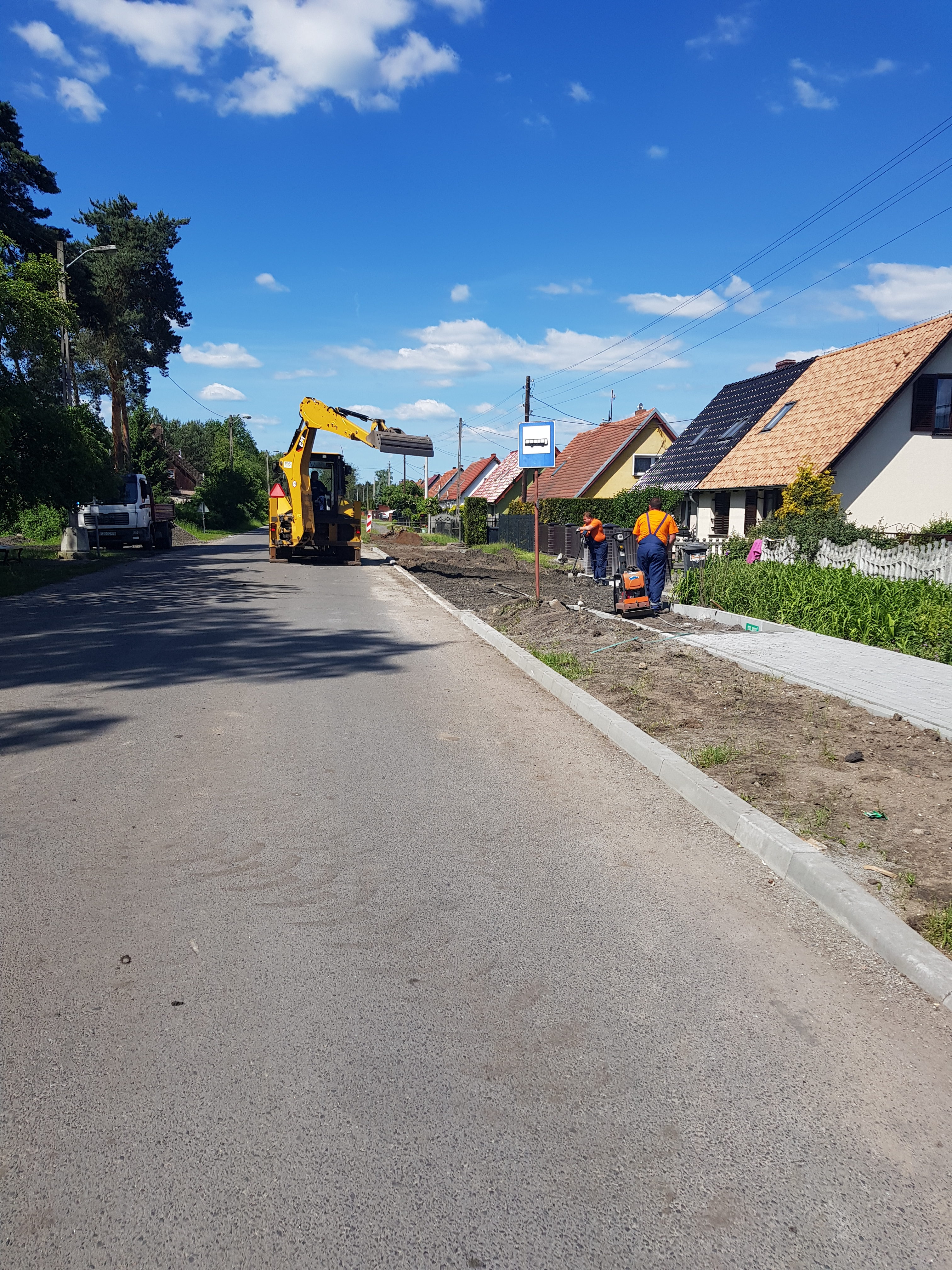 - roboty ziemne – wykopy, nasypy, profilowanie i zagęszczanie podłoża pod warstwy konstrukcyjne nawierzchni,