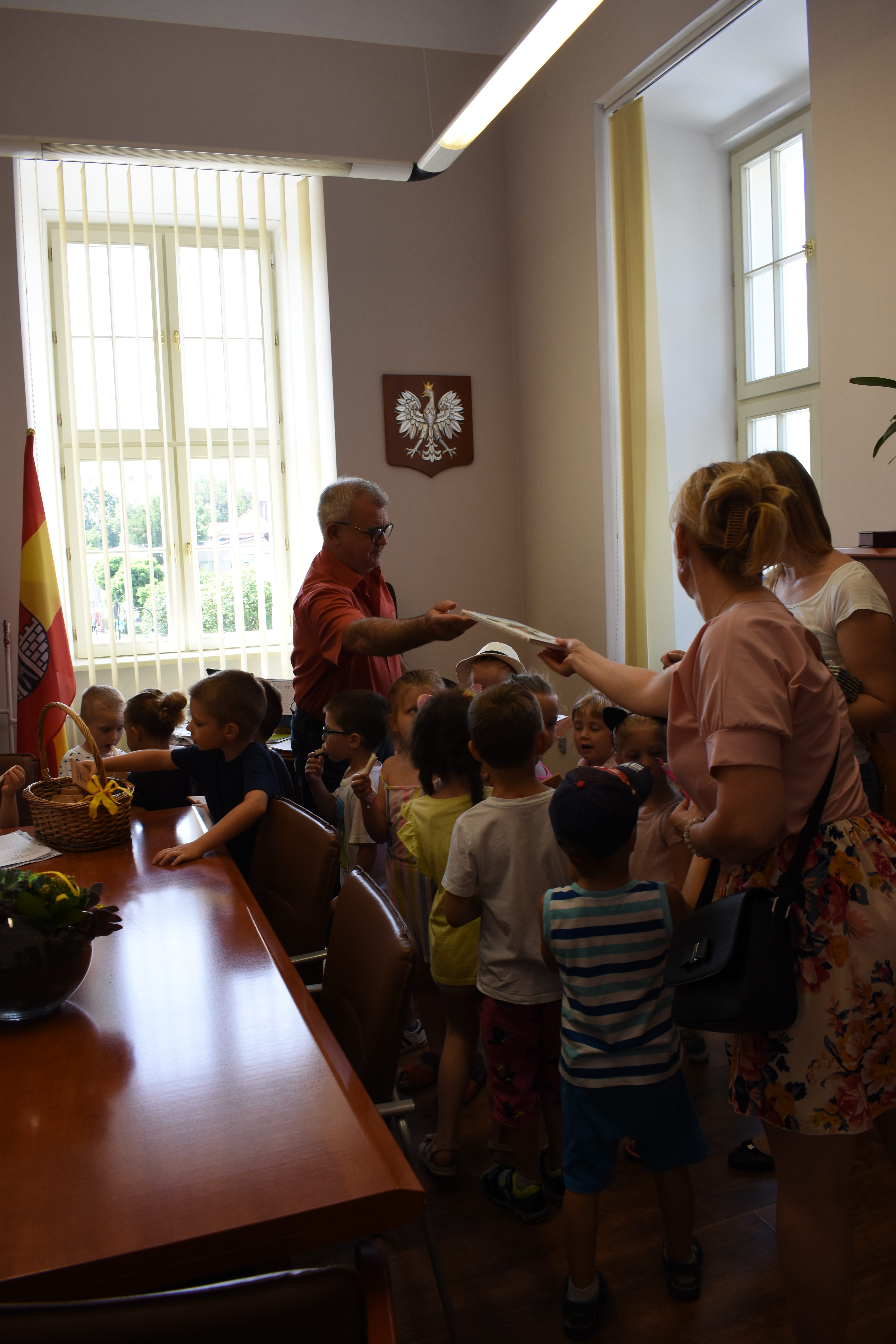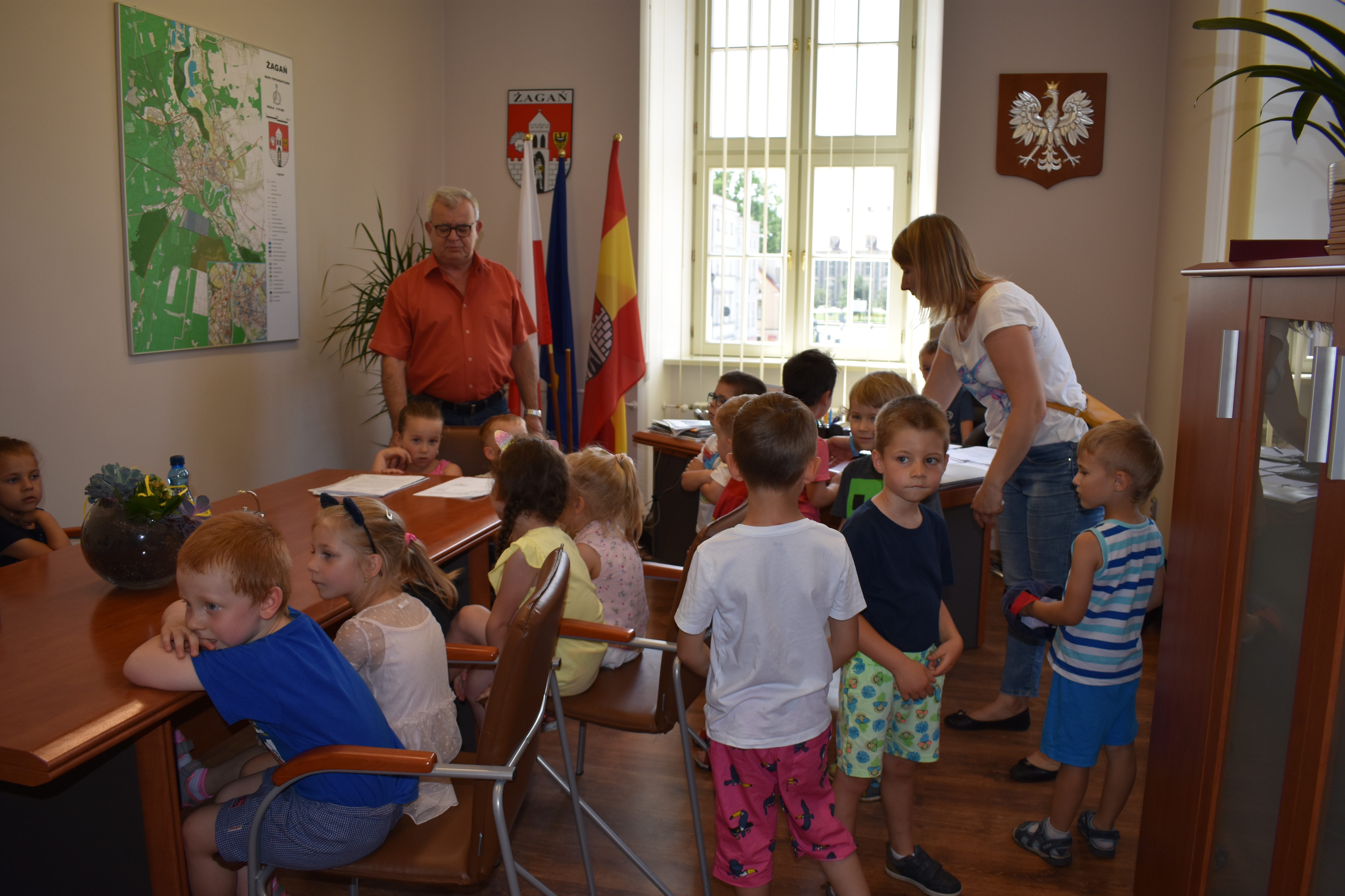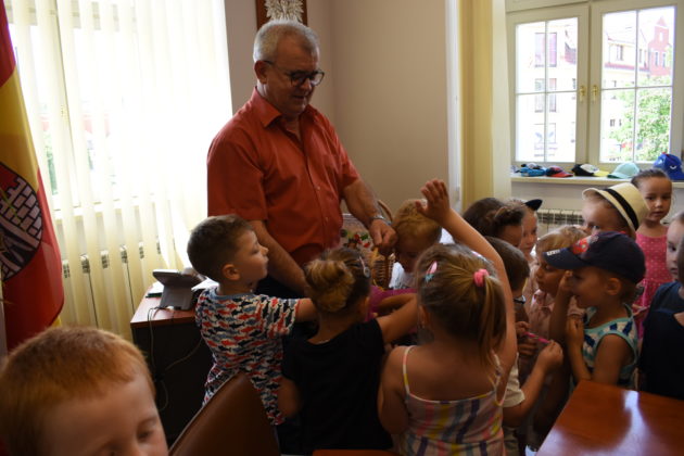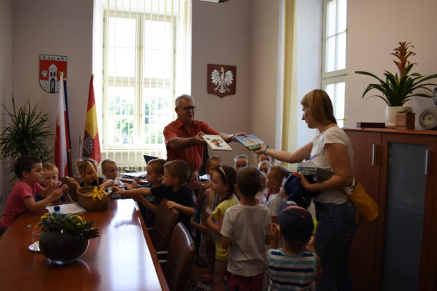 Urząd Miasta Żagań odwiedziły dziś 4-latki z Miejskiego Przedszkola nr 5. Zwiedzanie urzędu dzieci zakończyły wizytą w gabinecie burmistrza Andrzeja Katarzyńca, który poczęstował maluchy słodyczami. Przedszkolaki przymierzyły się do burmistrzowskiego fotela, otrzymały kredki oraz książki, które opiekunki grupy obiecały przeczytać maluchom.