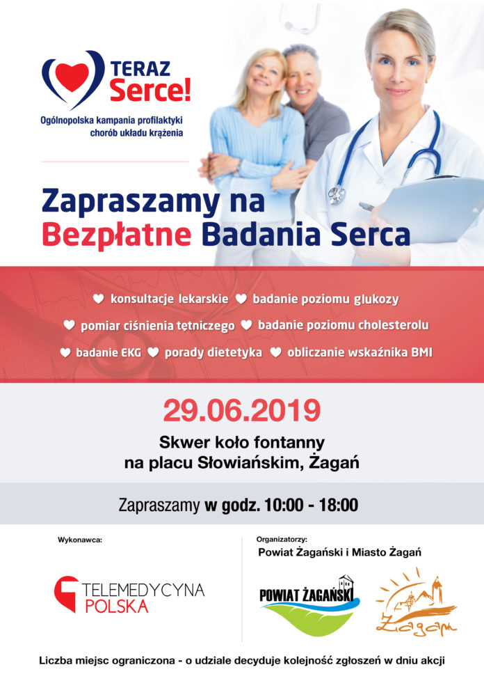 Wszystkich mieszkańców powiatu żagańskiego zapraszamy do udziału w Ogólnopolskiej kampanii profilaktyki chorób układu krążenia. 29 czerwca na skwerze przy fontannie na Placu Słowiańskim w Żaganiu mieszkańcy będą mieli możliwość wykonania badań, a także skonsultowania się z lekarzem. “Biała sobota” rozpocznie się o godzinie 10.00 i w tym roku zorganizowana została wspólnie przez Starostwo Powiatowe w Żaganiu we współpracy z Miastem Żagań. Akcja skierowana jest do mieszkańców całego powiatu, którzy zmagają się z problemami zdrowotnymi lub po prostu chcą się zbadać. Daje ona możliwość wykonania bezpłatnego badania kardiologicznego. W ramach akcji proponujemy konsultacje lekarskie, badanie poziomu glukozy, pomiar ciśnienia tętniczego, badanie poziomu cholesterolu, badanie EKS, porady dietetyka, a także obliczanie wskaźnika BMI. Dzięki tym badaniom mieszkańcy mogą liczyć na szereg wskazówek dotyczących właściwej diety oraz jak zapobiec nadciśnieniu tętniczemu krwi czy nadwadze.