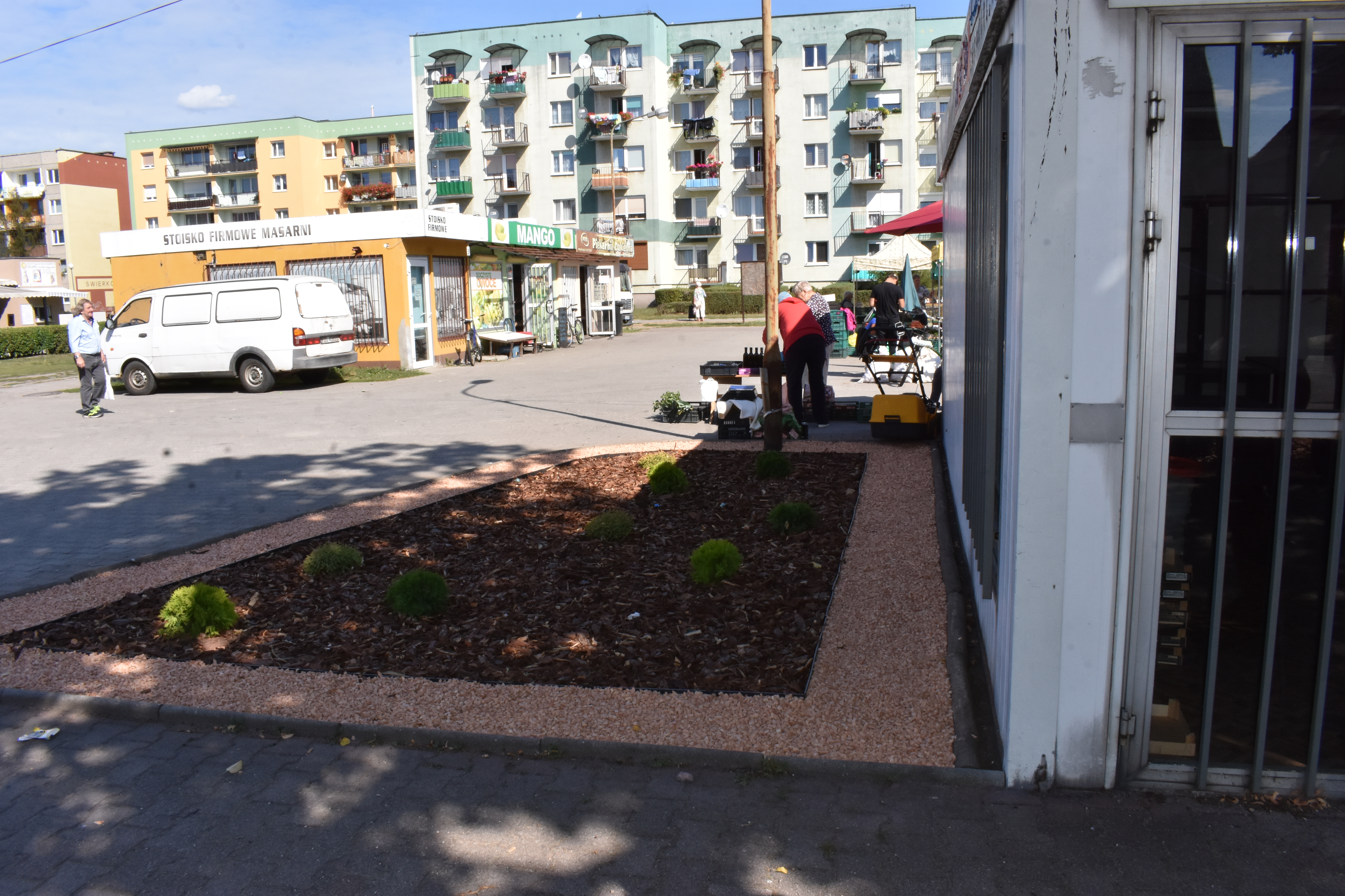 Burmistrz Andrzej Katarzyniec zaprosił dzisiaj dziennikarzy do wspólnej oceny stanu robót prowadzonych w rejonie ryneczku przy uicy Sportowej. Wszystkie podjęte tam prace wykonano na prośbę mieszkańców skarżących się na stan obiektu. Przede wszystkim wykonano podjazd dla osób niepełnosprawnych, które do tej pory nie miały możliwości samodzielnego wjazdu na teren targowiska. Ponadto zagospodarowano skwery zieleni, zamieniając trawniki służące za miejsca postojowe na skwery obsadzone iglakami i zabezpieczone korą. Uporządkowano w ten sposób tereny, które zarośnięte krzakami przez lata służyły za “wysypisko”. Udogodnieniem dla osób handlujących na ryneczku będzie 6 nowych zadaszonych stołów, które do końca miesiąca zamontowane zostaną na placu. Obecnie trwa montaż zakupionych konstrukcji. Na koniec zadbano o rozwiązanie największej niedogodności związanej z handlem na ryneczku – postawiono bezpłatną toaletę, z której korzystać będą mogli zarówno handlujący, jak i klienci ryneczku.