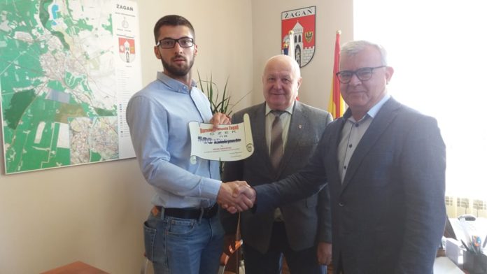 Na zaproszenie burmistrza Andrzeja Katarzyńca oraz przewodniczącego rady miasta Adama Matwijowa urząd miasta odwiedził Jakub Gałandziej, lekkoatleta z Żagania, który odnosi  sukcesy na arenie międzynarodowej. Aby wesprzeć młodego sportowca i podziękować mu za godne reprezentowanie miasta na mistrzostwach Polski i Europy, burmistrz przekazał zawodnikowi symboliczny czek na zakup sprzętu sportowego.