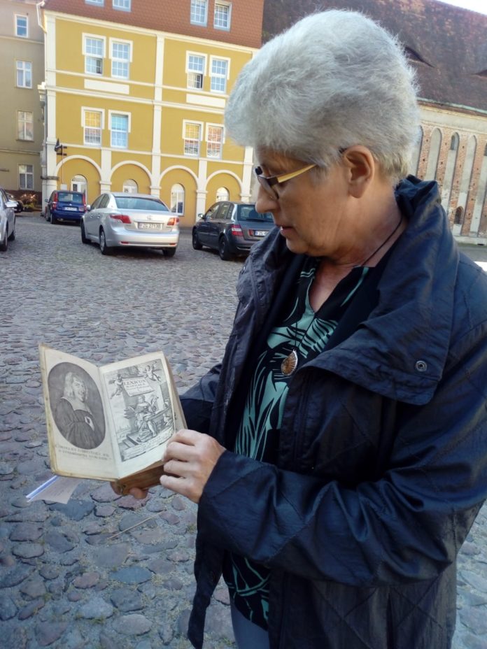 21 września 2019 roku w bibliotece klasztornej Opactwa Poaugustiańskiego spotkali się: darczyńca książki Peter Schultz z Salzgitter koło  Hannoveru, zastępca burmistrza Sebastian Kulesza, ksiądz Władysław Tasior, Proboszcz Parafii NMP w Żaganiu oraz panie Maria Piątek i Halina Dobrakowska z Towarzystwa Przyjaciół Żagania. Pan Peter Schultz z Niemiec znalazł się w posiadaniu książki pochodzącej z 1714 roku, sygnowanej pieczęcią “Sagan”. Jest to grecko-łaciński leksykon z terenów Górnych i Dolnych Łużyc po swoich przodkach. Patrząc na słabo widoczną pieczęć domyślał się , że pochodzi z biblioteki Piotra Birona lub biblioteki augustiańskiej. Ponieważ uprzednio miał kontakty z zielonogórskimi tenisistami, postanowił przekazać tę cenną pozycję na powrót do biblioteki. Dlatego też, symboliczne przekazanie księgi, uzgodnione wcześniej z Haliną Dobrakowską, jednocześnie z wpisem do księgi pamiątkowej odbyło się w tak uroczystej i podniosłej atmosferze. Oby więcej takich pamiątek mogło znaleźć miejsce w tak zacnym otoczeniu.