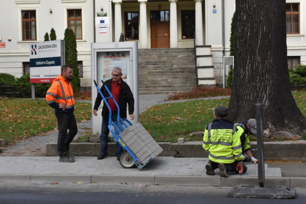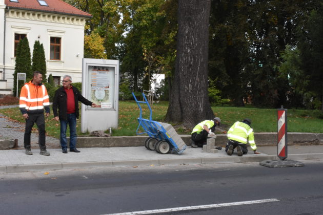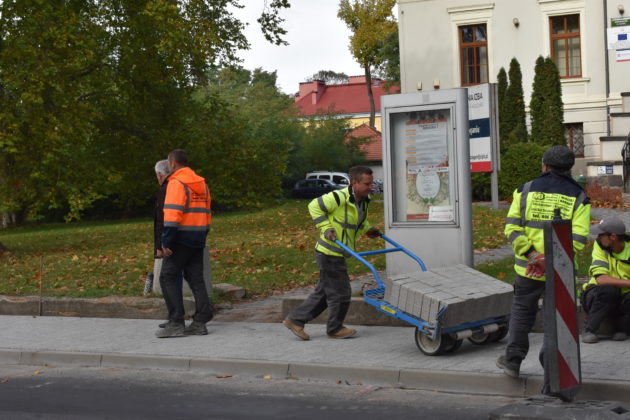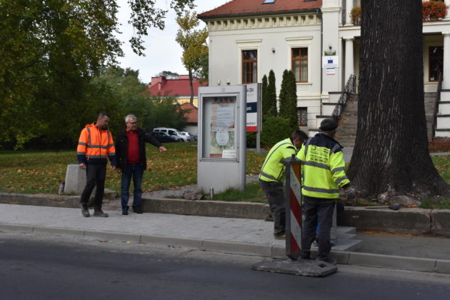 Burmistrz Andrzej Katarzyniec spotkał się dzisiaj z wykonawcą zadania przebudowy chodników wzdłuż ulicy Jana Pawła II w Żaganiu w ciągu drogi wojewódzkiej nr 296. Zadanie realizowane jest przez Firmę Handlowo-Usługową Macieja Bergera z Iłowy. Burmistrz Andrzej Katrzyniec podziękował wykonawcy za tempo prowadzonych prac. Stan chodników wzdłuż ulicy Jana Pawła II był fatalny, stąd cieszy realizacja inwestycji. Burmistrz Andrzej Katarzyniec wielokrotnie spotykał się w Zarządzie Dróg Wojewódzkich z dyrektorem Pawłem Tonderem, rozmawiając o możliwościach zmiany stanu chodników wzdłuż drogi wojewódzkiej oraz deklarując wsparcie miasta przy finansowaniu zadania. Potrzeba realizacji inwestycji zgłaszana była również każdorazowo przy okazji rozmów z przedstawicielami Zarządu Województwa Lubuskiego.
