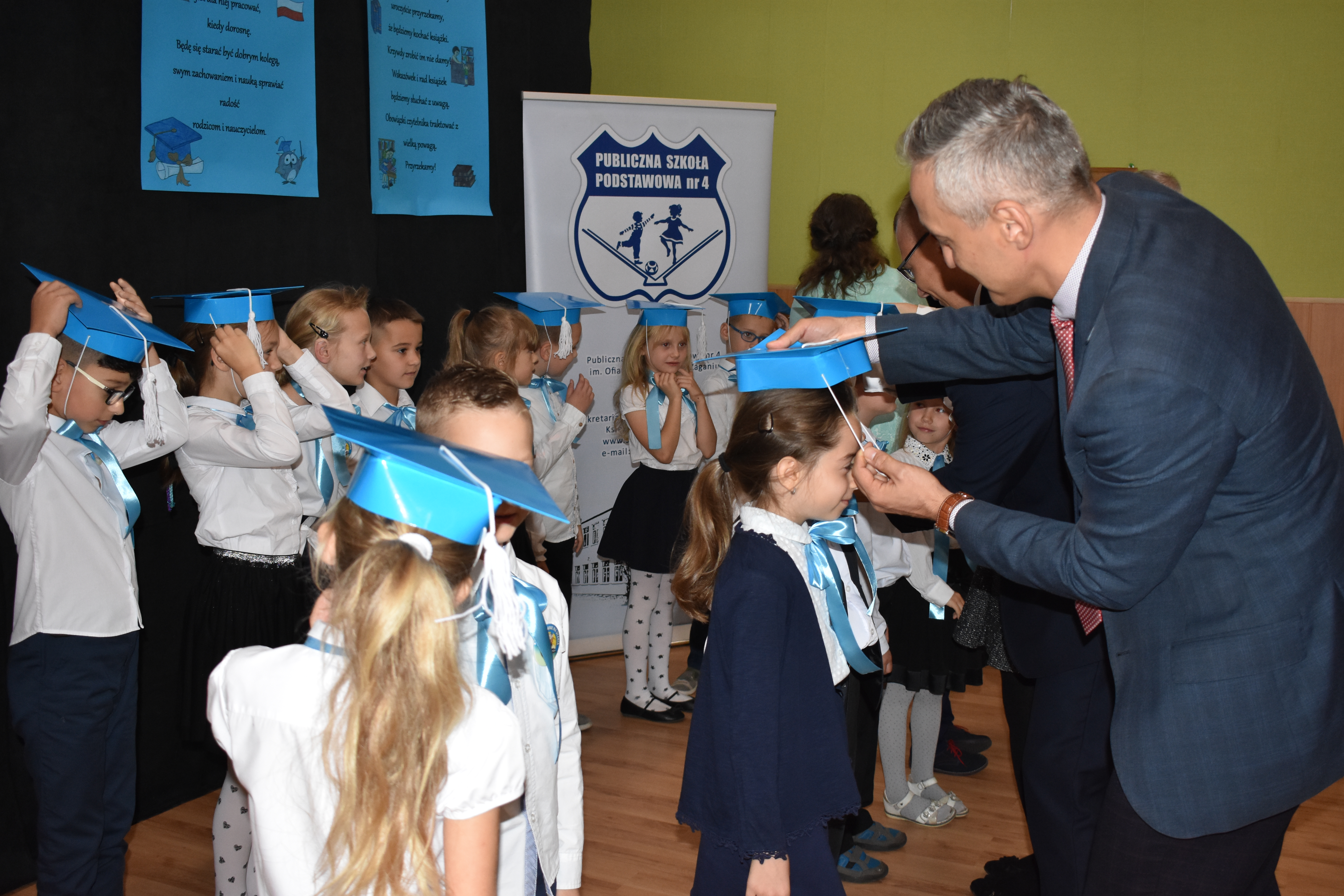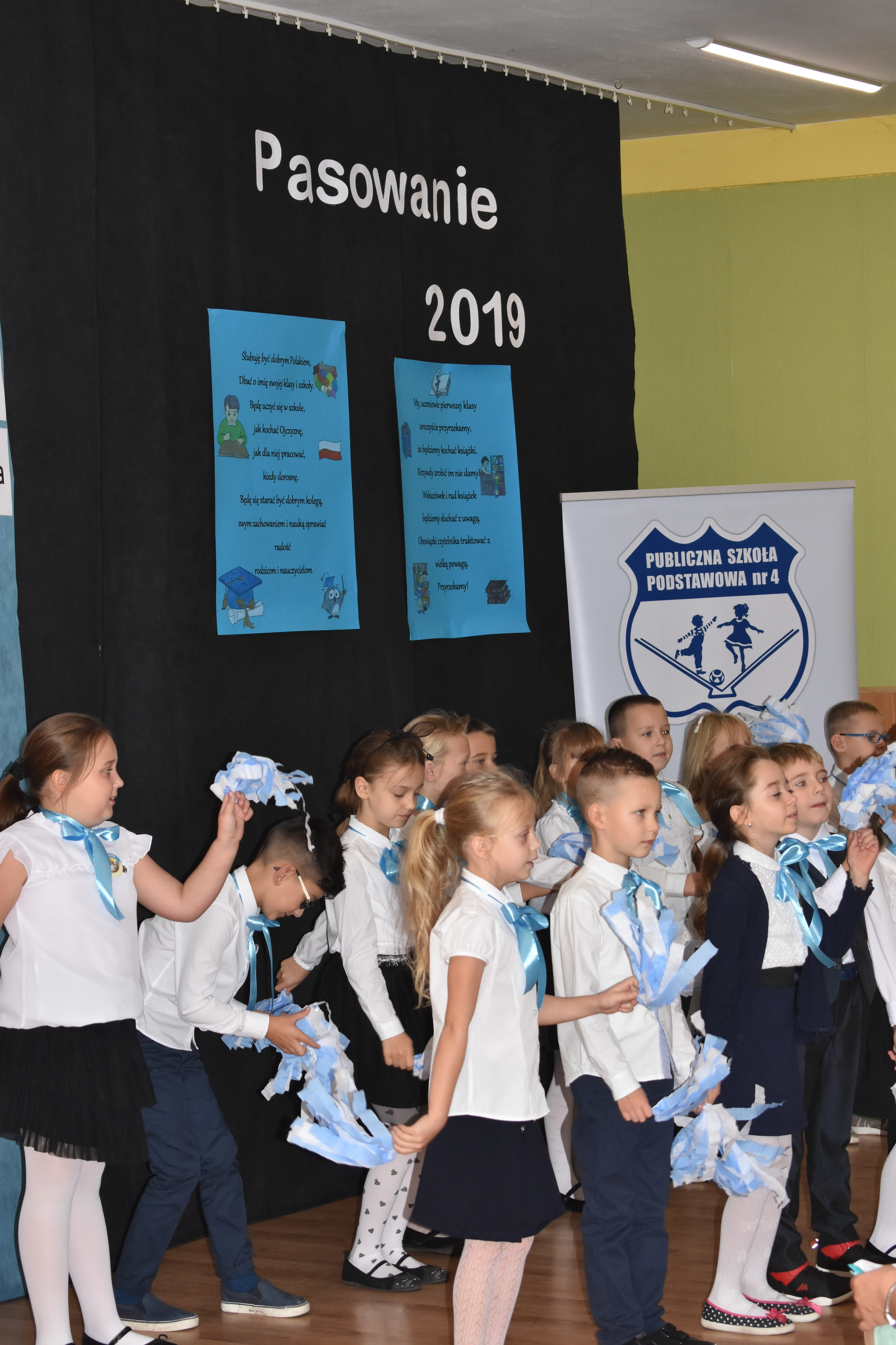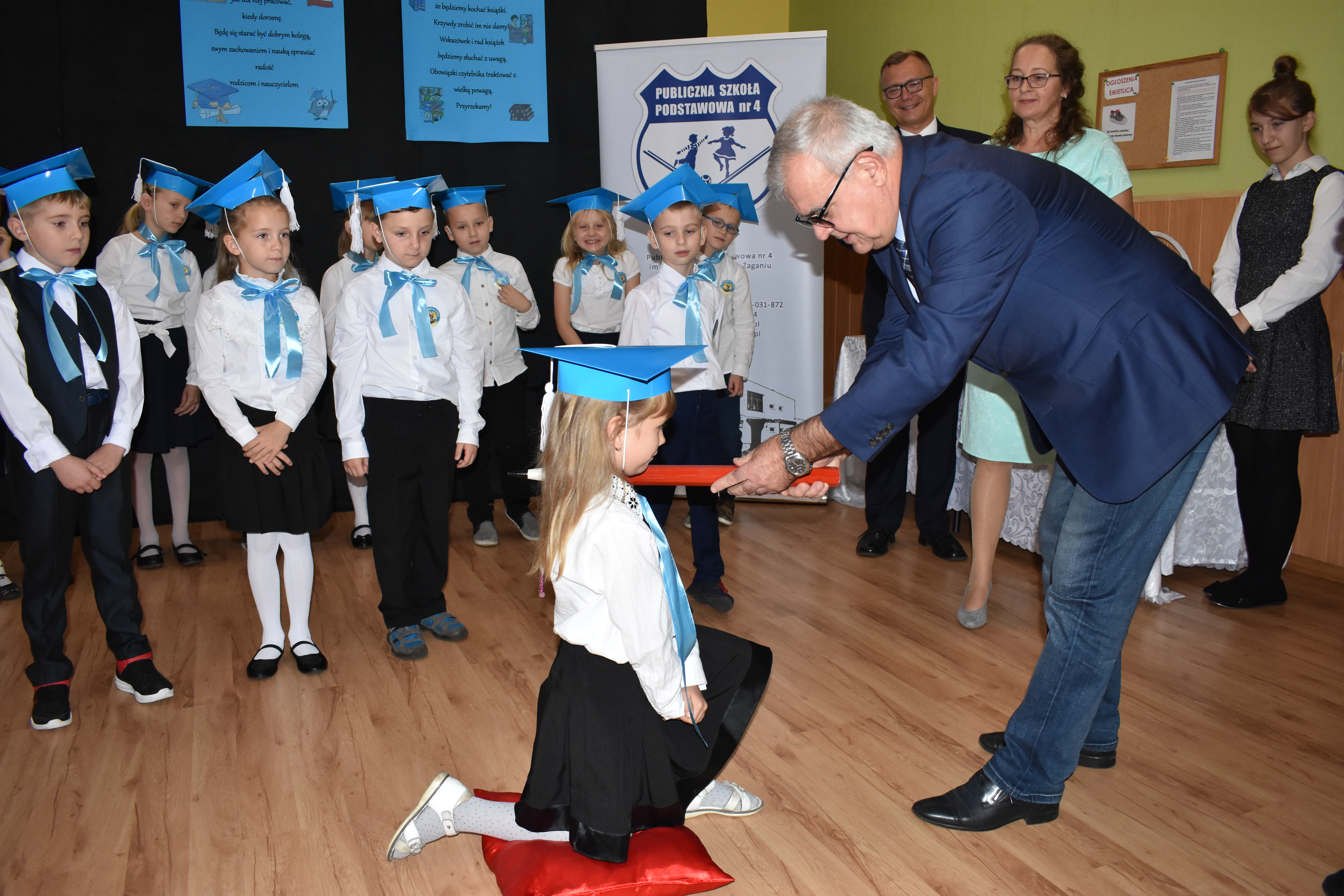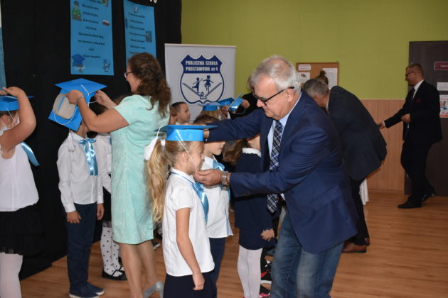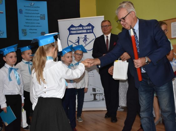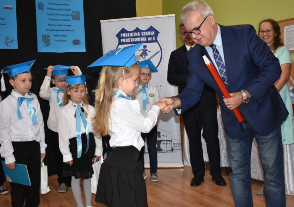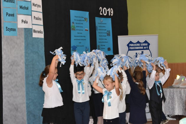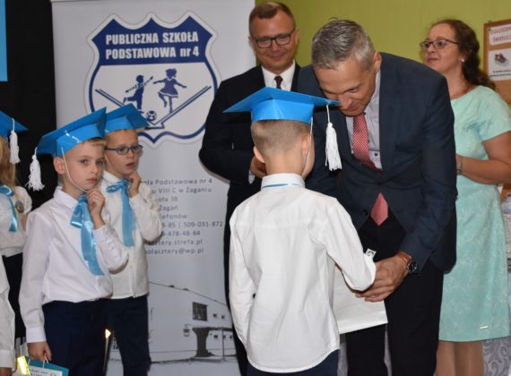 24 października 2019 roku do społeczności uczniowskiej w PSP nr 4 przystąpiło siedemnastu nowych żaków. W trakcie uroczystości dzieci zaprezentowały swoje umiejętności taneczne, wokalne i recytatorskie, udowadniając tym samym swoją gotowość do rozpoczęcia nauki. Pierwszoklasiści złożyli uroczyste ślubowanie, a następnie każde dziecko zostało pasowane przez burmistrza Andrzeja Katarzyńca na ucznia Publicznej Szkoły Podstawowej nr 4 w Żaganiu. Pełnoprawni uczniowie odbierali następnie gratulacje od dyrektora szkoły Piotra Pałaca, wychowawczyni Arlety Ciołkowskiej oraz zastępcy burmistrza Sebastiana Kuleszy, który wręczał najmłodszym drobne upominki. Tomasz Prus pasował każdego ucznia na czytelnika, zachęcając do korzystania ze szkolnej biblioteki i dbania o papierowych przyjaciół.