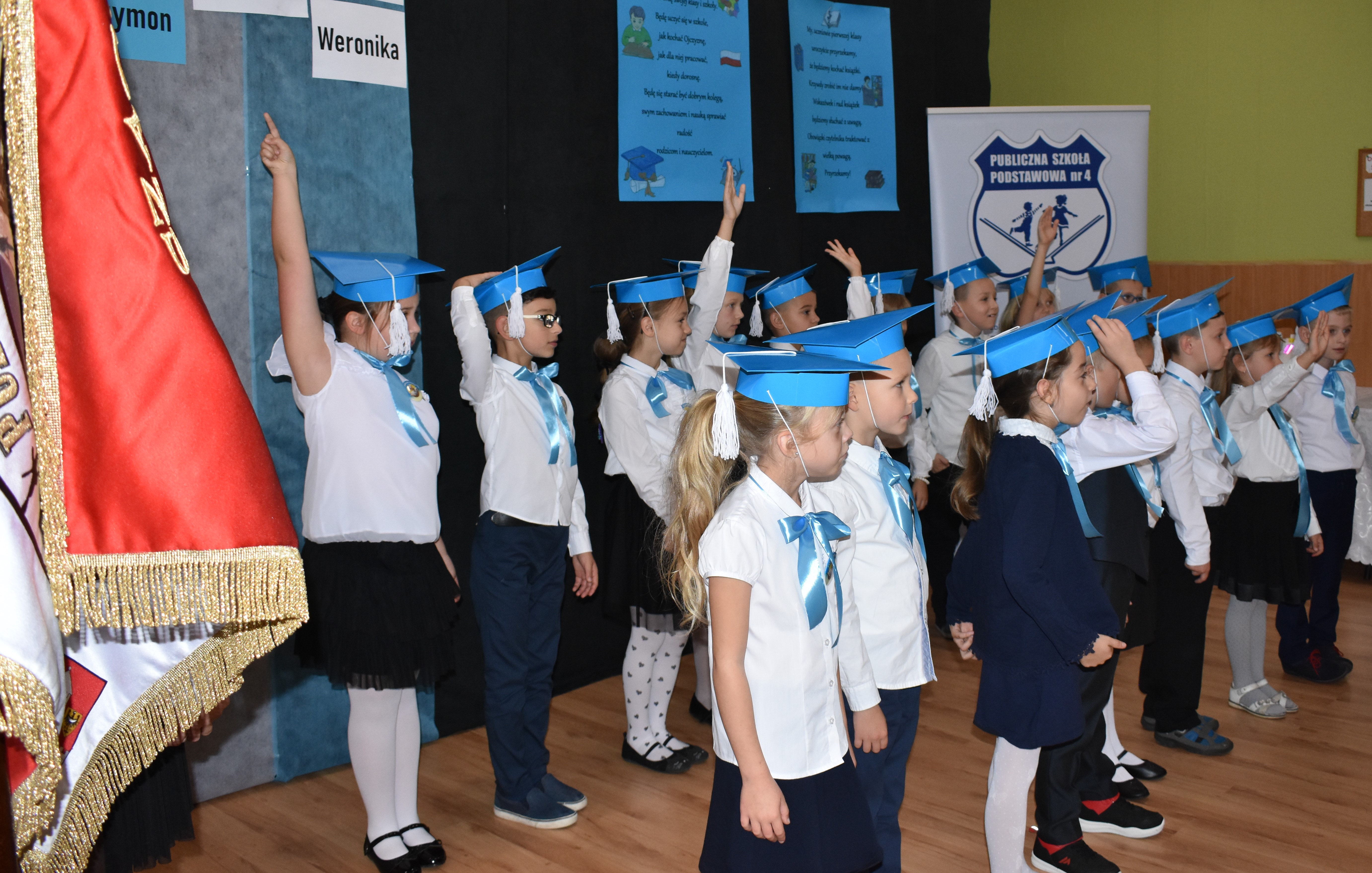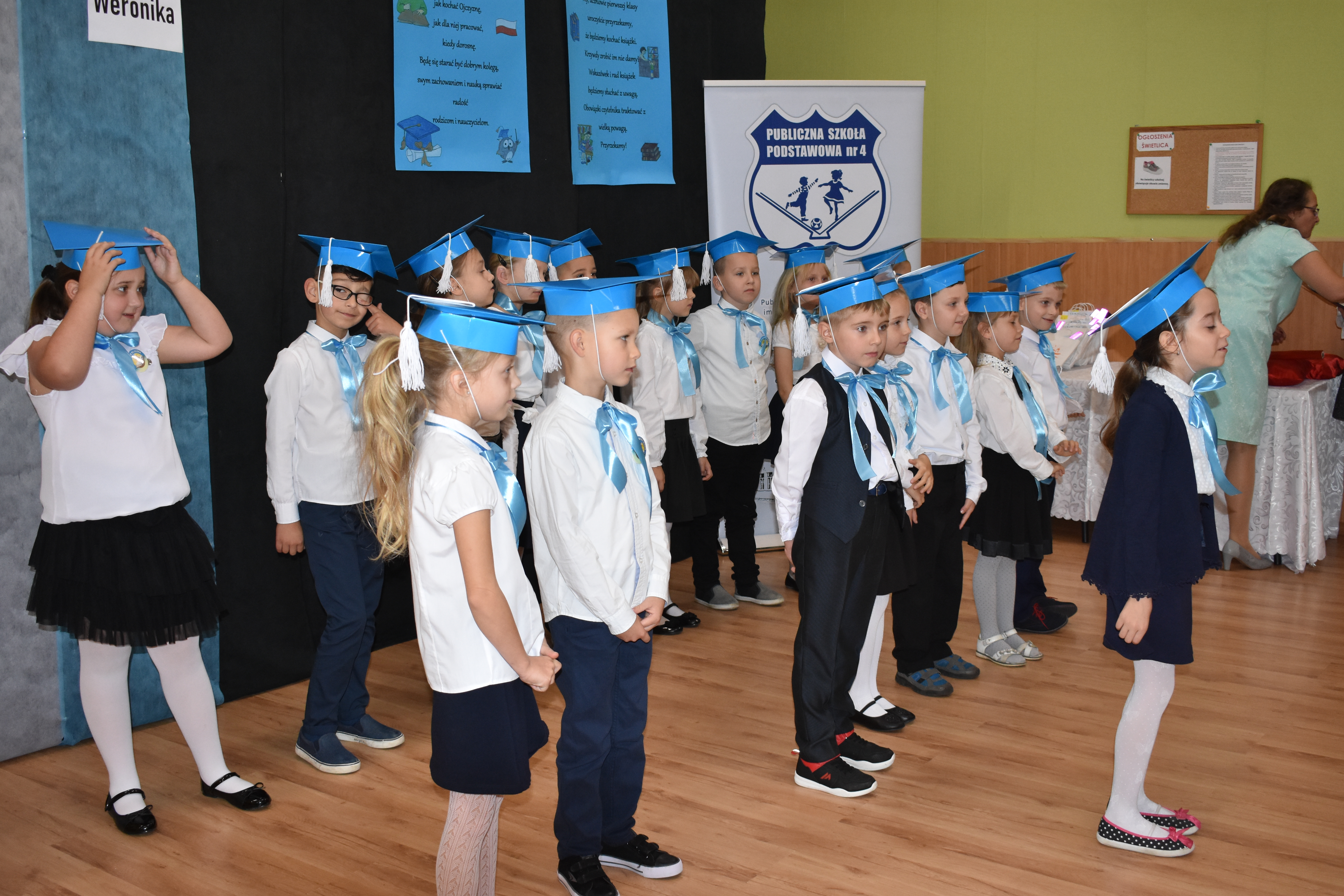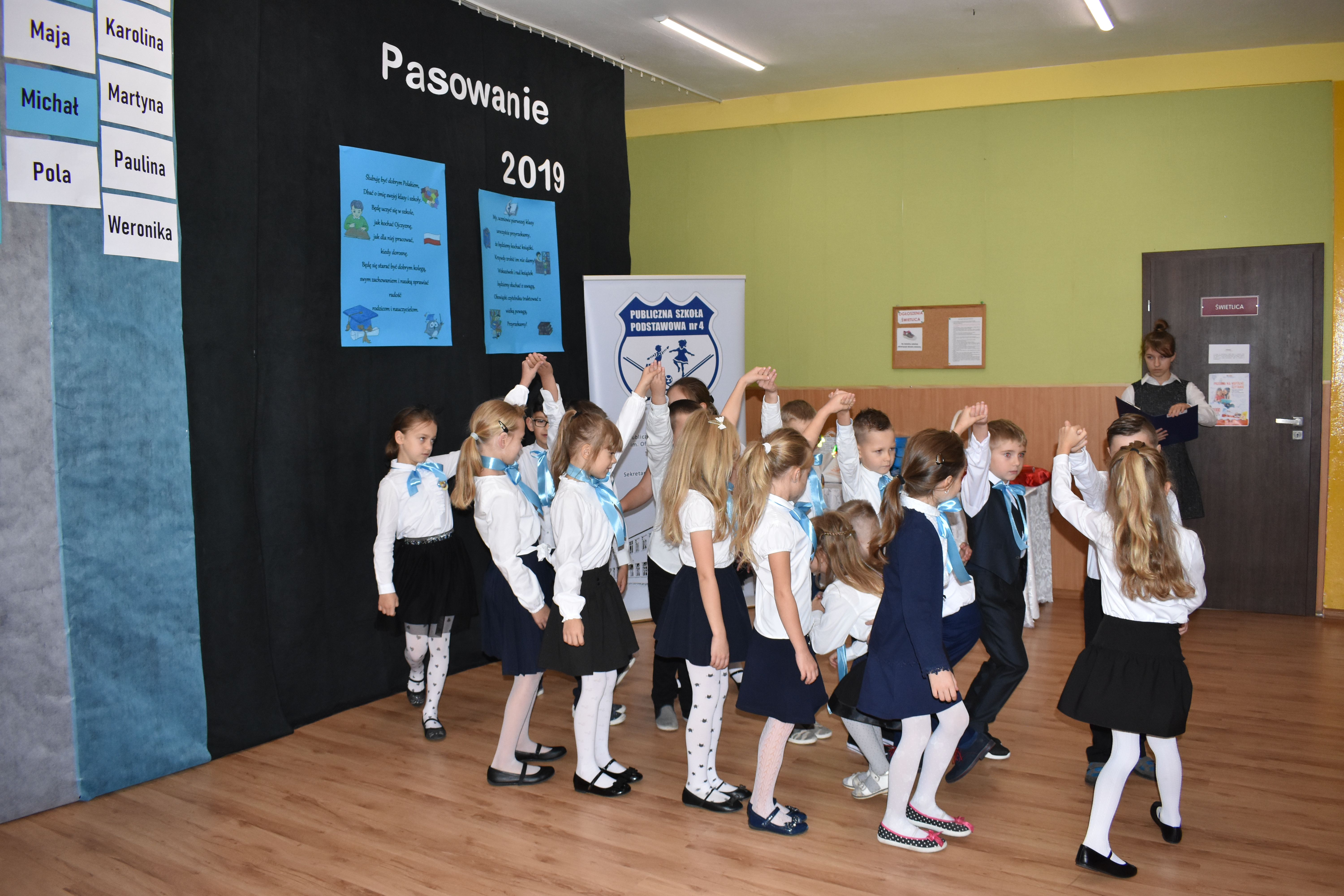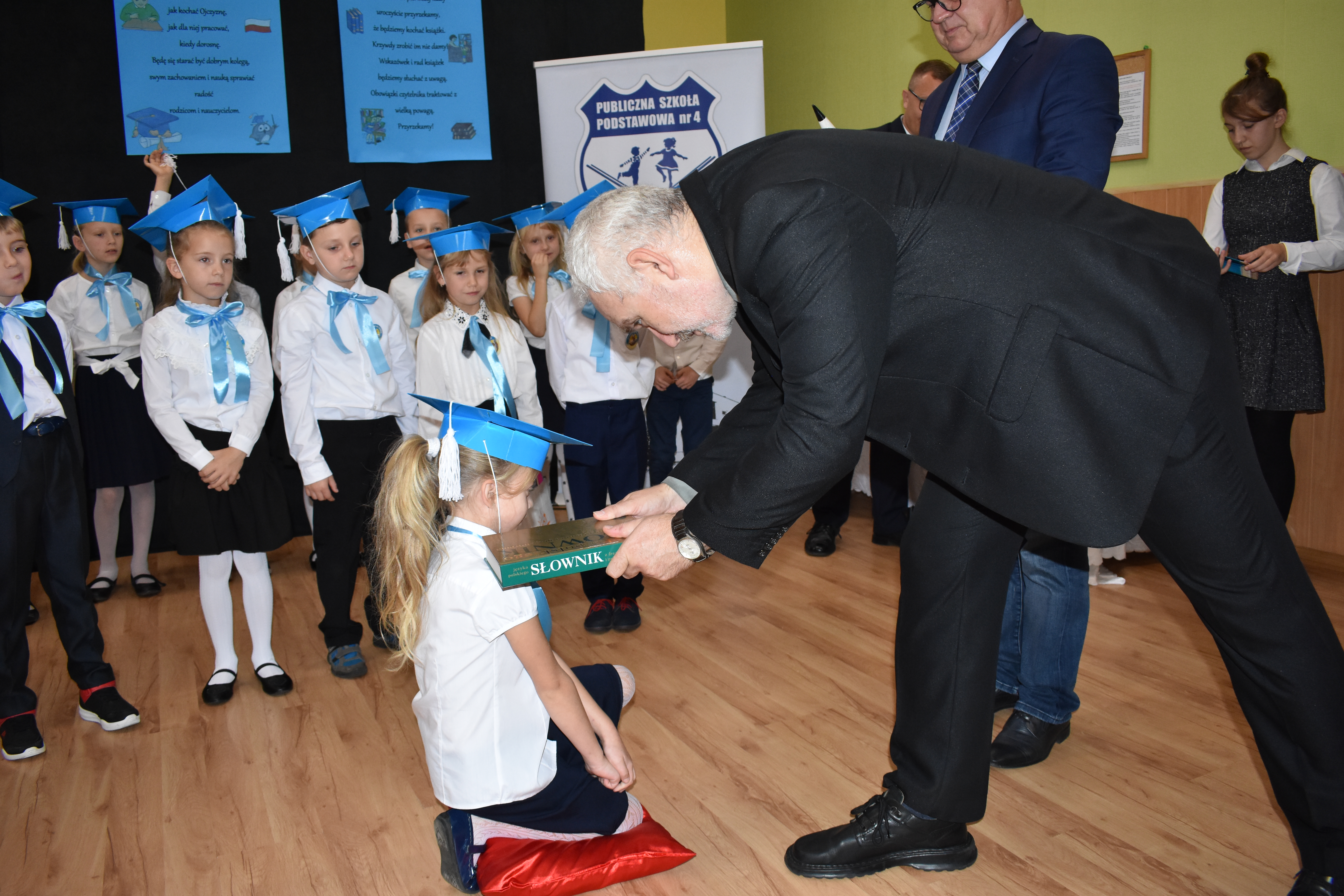 24 października 2019 roku do społeczności uczniowskiej w PSP nr 4 przystąpiło siedemnastu nowych żaków. W trakcie uroczystości dzieci zaprezentowały swoje umiejętności taneczne, wokalne i recytatorskie, udowadniając tym samym swoją gotowość do rozpoczęcia nauki. Pierwszoklasiści złożyli uroczyste ślubowanie, a następnie każde dziecko zostało pasowane przez burmistrza Andrzeja Katarzyńca na ucznia Publicznej Szkoły Podstawowej nr 4 w Żaganiu. Pełnoprawni uczniowie odbierali następnie gratulacje od dyrektora szkoły Piotra Pałaca, wychowawczyni Arlety Ciołkowskiej oraz zastępcy burmistrza Sebastiana Kuleszy, który wręczał najmłodszym drobne upominki. Tomasz Prus pasował każdego ucznia na czytelnika, zachęcając do korzystania ze szkolnej biblioteki i dbania o papierowych przyjaciół.