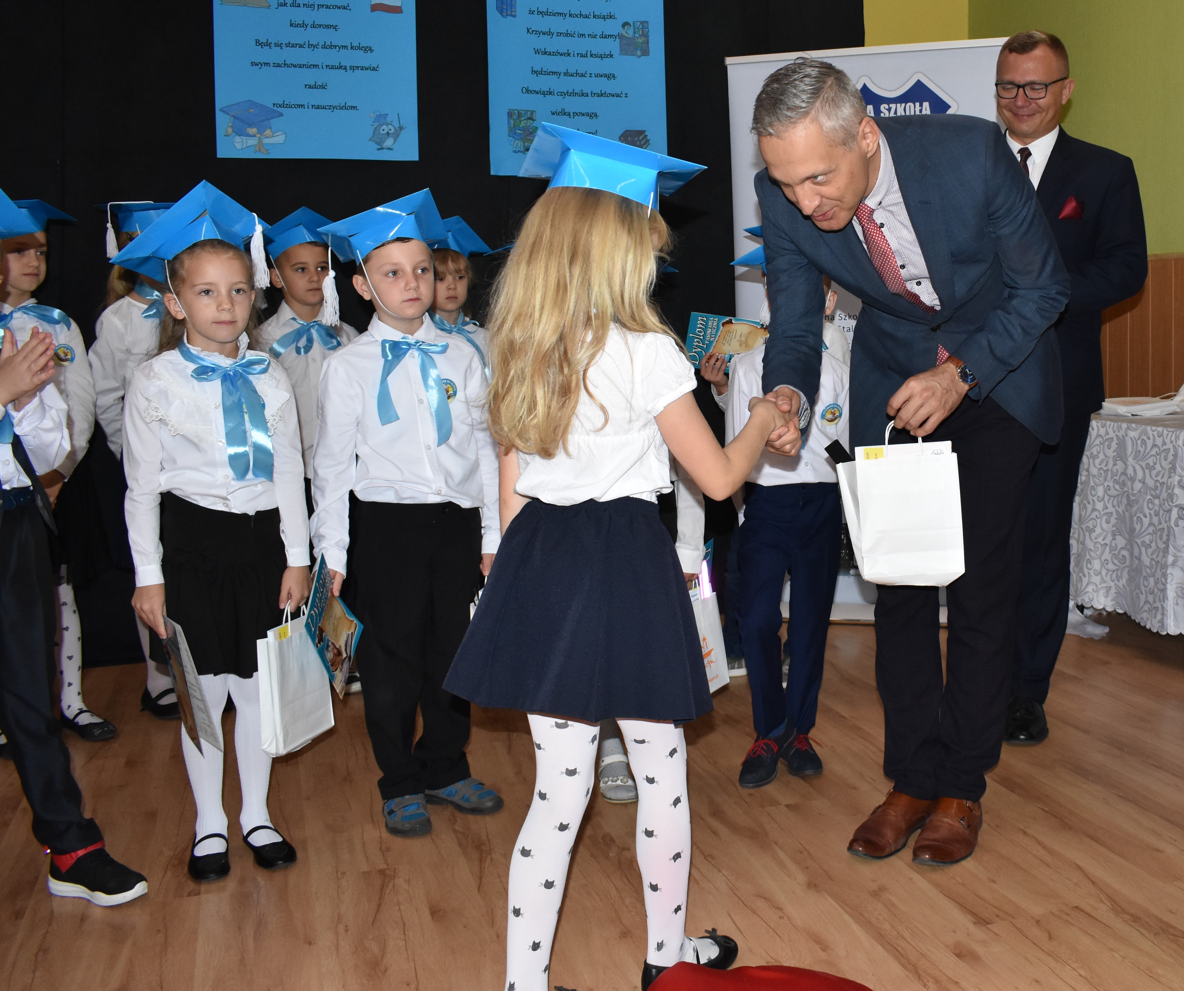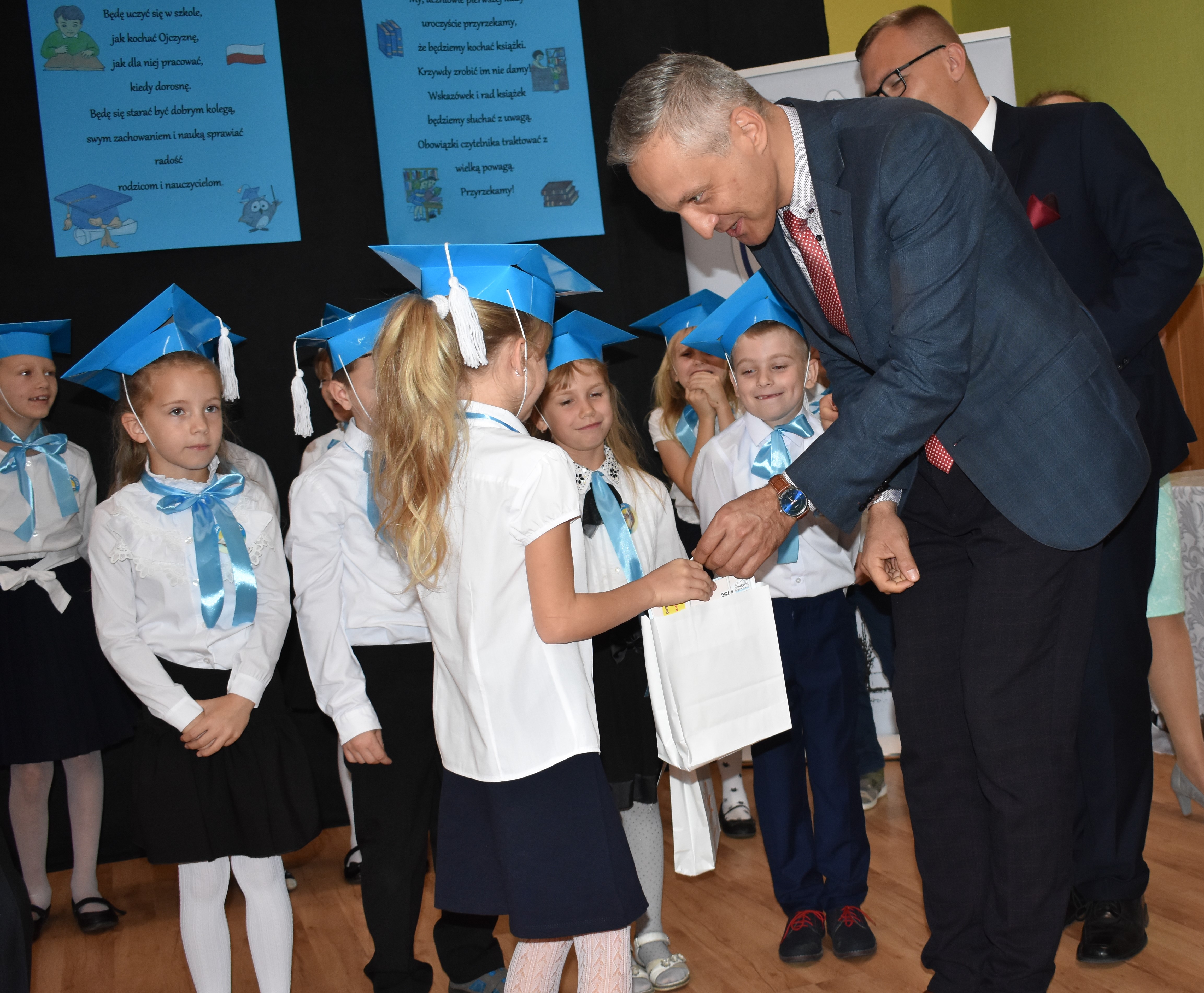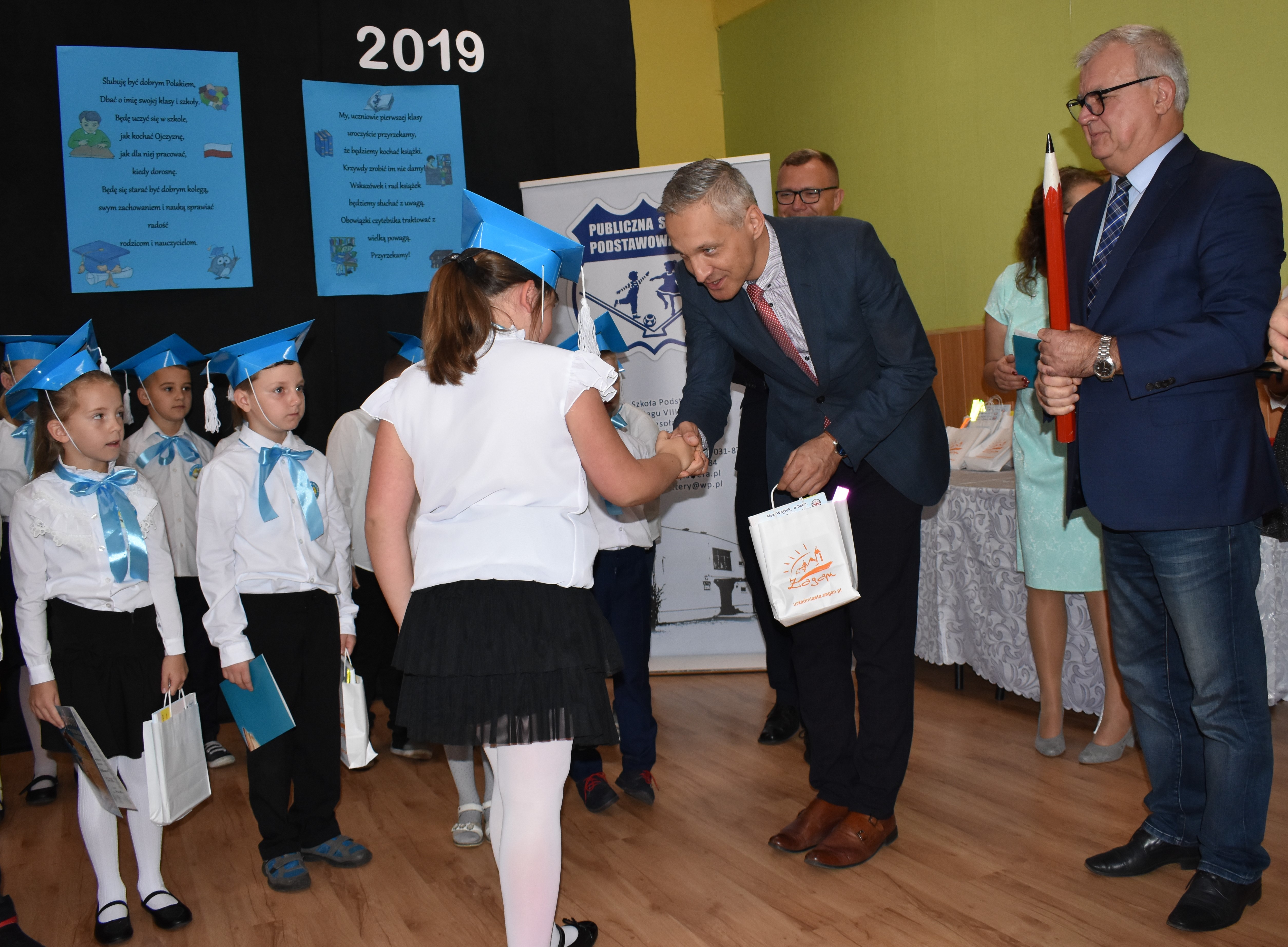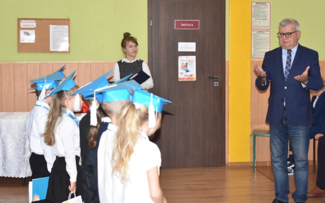 Gospodarz miasta podziękował społeczności szkoły za przygotowanie uroczystości. Andrzej Katarzyniec podkreślił, iż największym atutem placówki jest rodzinna atmosfera w niej panująca. Pomimo zakusów dotyczących likwidacji szkoły ta nadal funkcjonuje i jak widać, doskonale sobie radzi. Dyrektor Piotr Pałac zadeklarował, że cała kadra zadba o to, aby nowi uczniowie do końca swojej przygody edukacyjnej czuli się w szkole jak w domu.