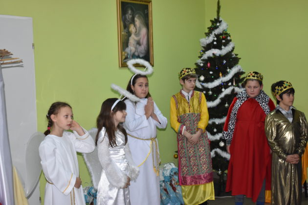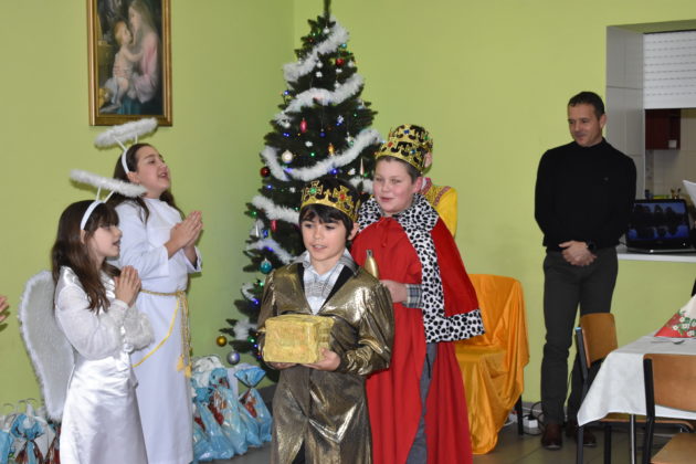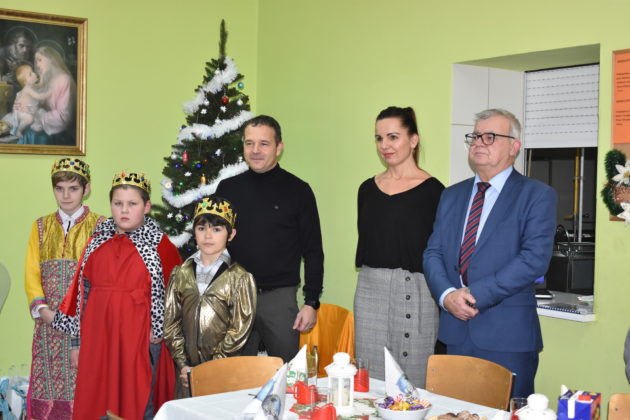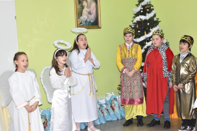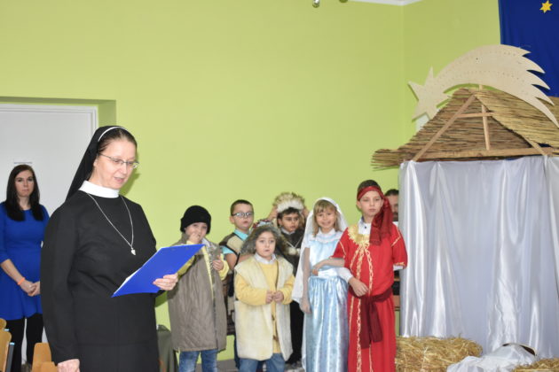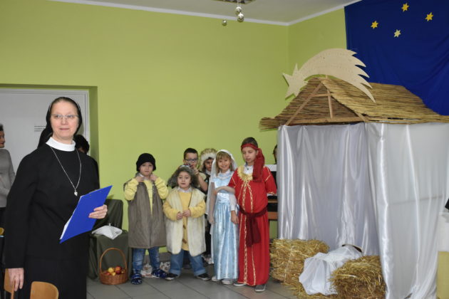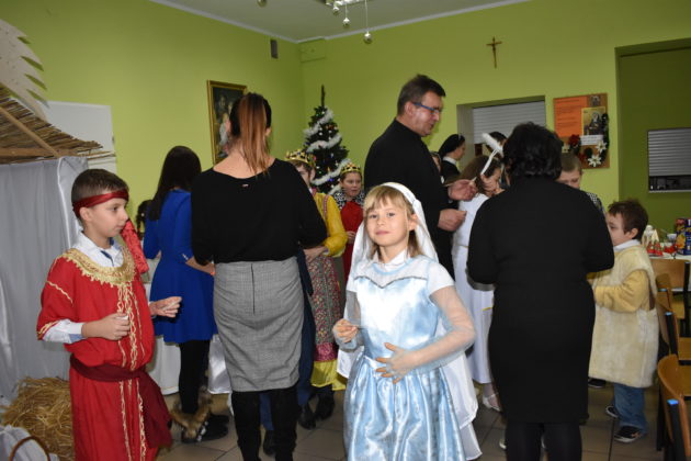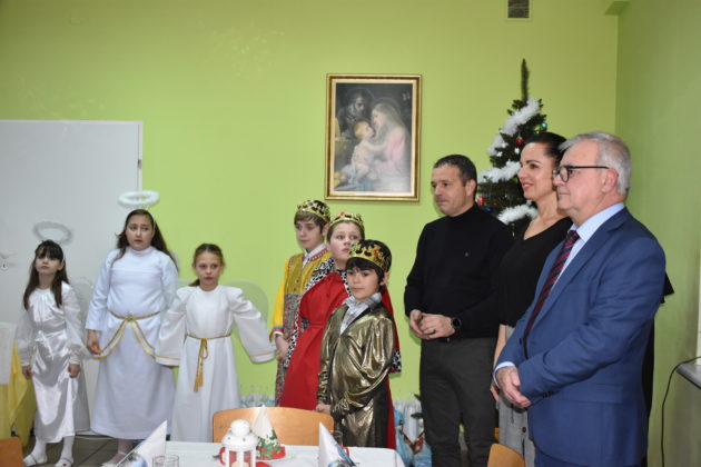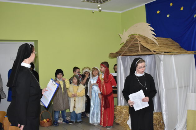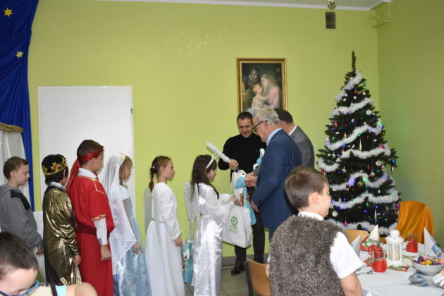 18 grudnia 2019 roku w świetlicy dla dzieci przy Parafii Wniebowzięcia NMP w Żaganiu odbyło się świąteczne spotkanie wigilijne, przygotowane przez dzieci, siostrę Ewę i Beatę ze Zgromadzenia Sióstr Adoratorek Krwi Chrystusa oraz wolontariuszy. Dzieci przygotowały przepiękne jasełka, które obejrzeli zaproszeni goście – burmistrz Andrzej Katarzyniec, p.o. kierownika OPS Piotr Puchalski, naczelnik oświaty urzędu Mariusz Krugły oraz Monika Wojtysiak. Po zakończonym przedstawieniu dzieci zaprosiły gości do wspólnego kolędowania, a następnie wszyscy podzielili się opłatkiem, składając sobie najserdeczniejsze życzenia. Burmistrz życząc najmłodszym zdrowych, spokojnych, radosnych świąt oraz wspaniałego nadchodzącego Nowego Roku 2020, wręczył dzieciom paczki świąteczne.