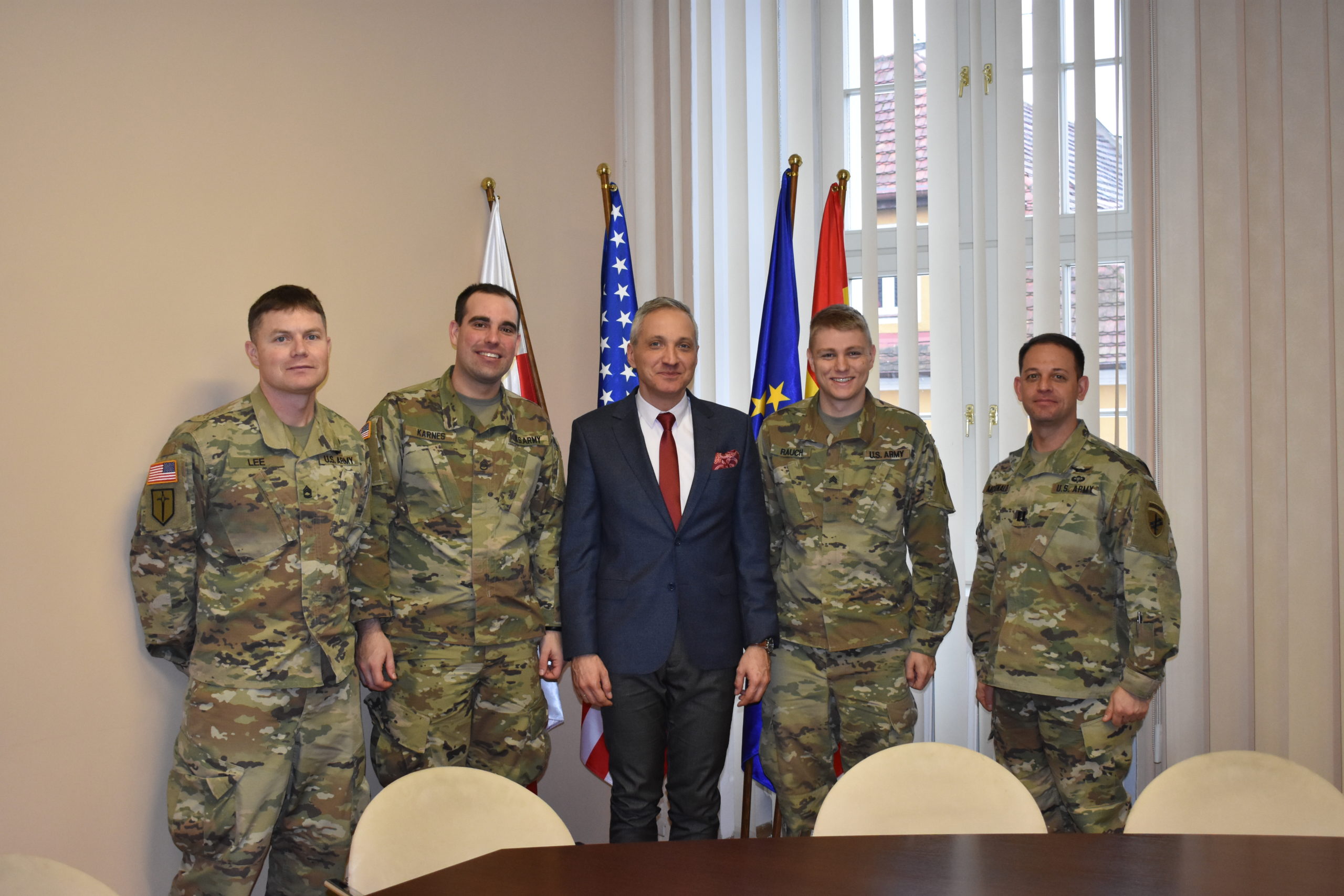 Na zaproszenie burmistrza do naszego urzędu zawitała delegacja Civil Affairs Team (zespołu ds. współpracy z ludnością cywilną), która na co dzień stacjonuje w Kielcach. Włodarze miasta podziękowali żołnierzom amerykańskim za czynny udział w uroczystościach miejskich – Jarmarku Bożonarodzeniowym, gdzie przedstawiciele wojsk stacjonujący w Bolesławcu zaśpiewali ze sceny “Silent Night”, II Orszaku Trzech Króli oraz spotkaniach z władzami miasta.