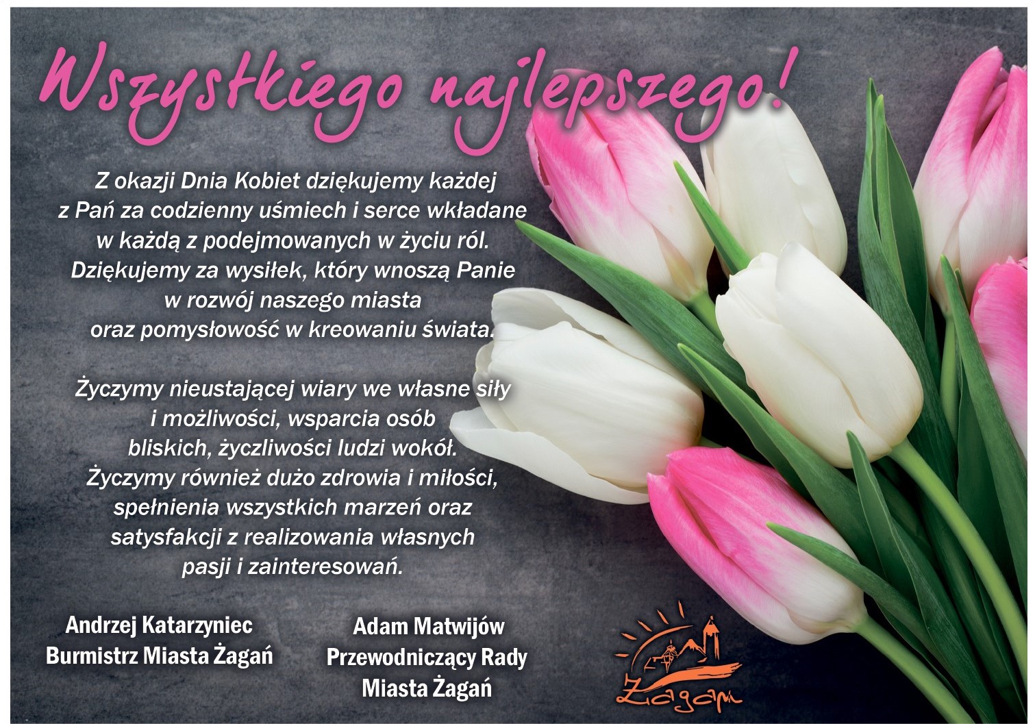 Strona główna WIADOMOŚCI Wszystkiego Najlepszego! WIADOMOŚCI Wszystkiego Najlepszego! 2020.03.08 Szanowne Panie! Niech ten dzień będzie równie wyjątkowy, jak każdy kolejny. Niech spełnią się Wasze marzenia – wszystkie! Zobacz równieżWIĘCEJ OD AUTORA Żagańska Karta Mieszkańca Oświadczenie Burmistrza Miasta Żagań w sprawie oświaty Ruszył nabór wniosków do miejskiego programu wymiany kotłów na paliwa stałe