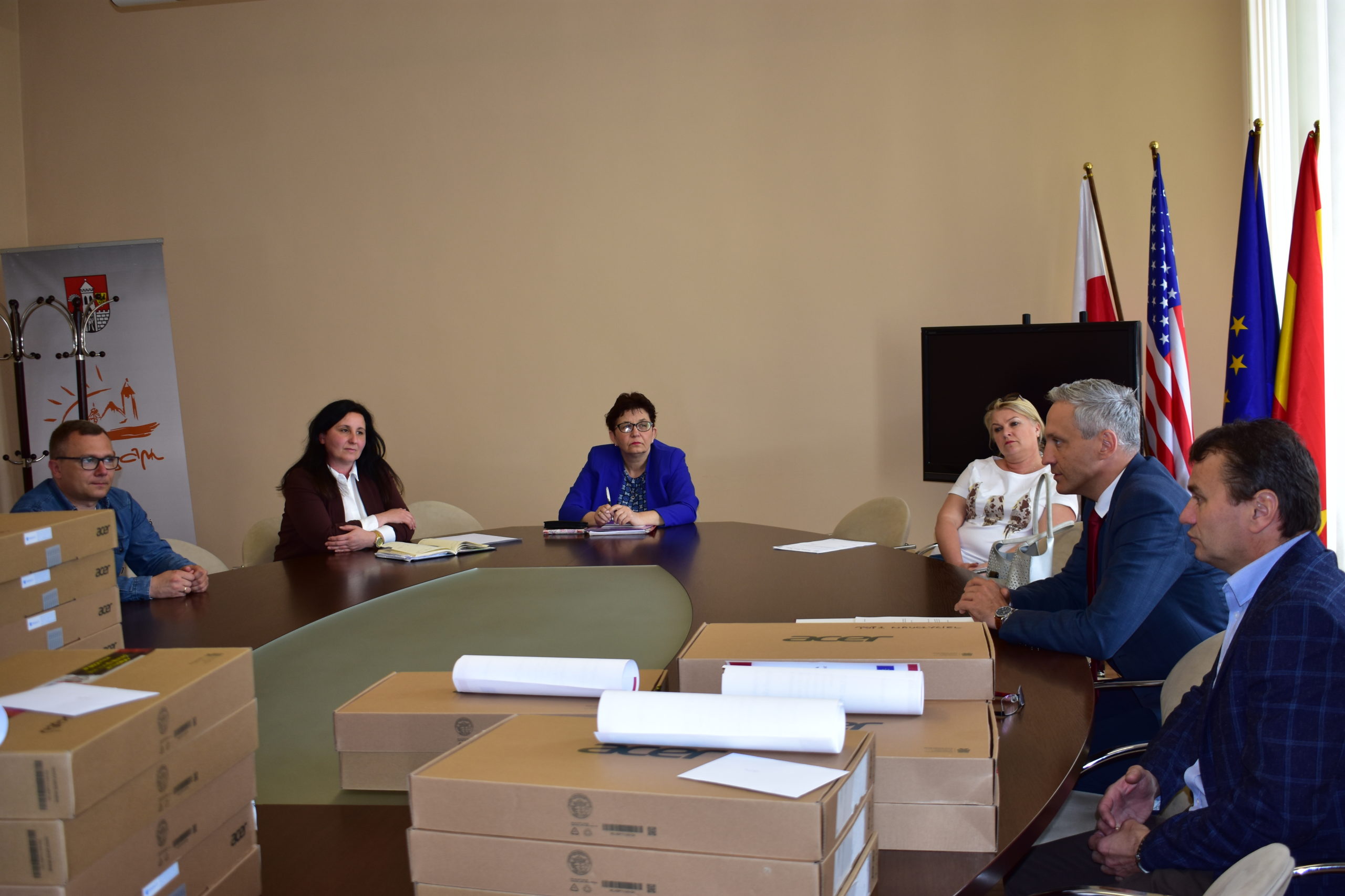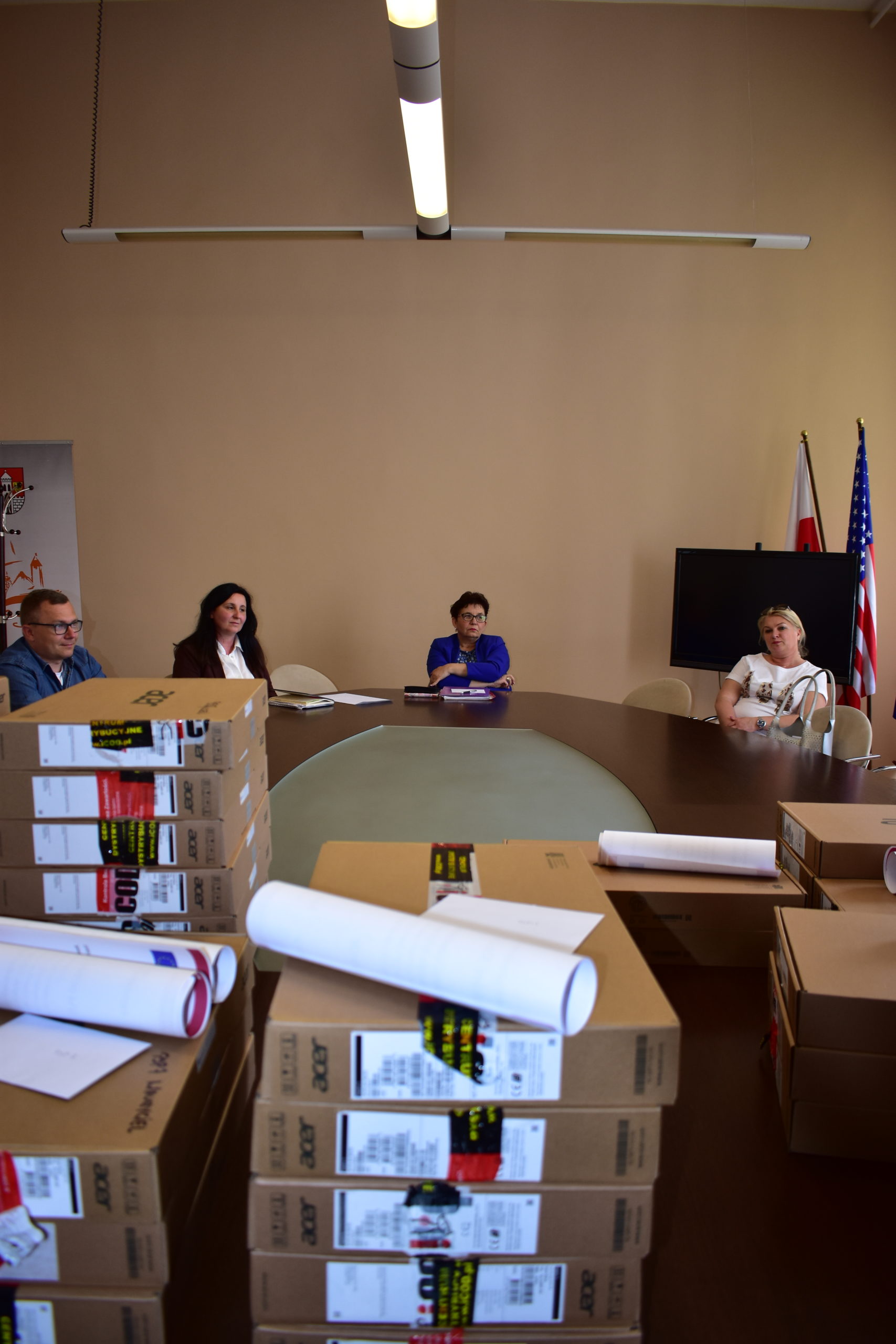 4 czerwca 2020 roku odbyło się spotkanie zastępcy burmistrza Sebastiana Kuleszy oraz naczelnika wydziału oświaty Mariusza Krugłego z dyrektorami miejskich szkół. Oprócz tematów organizacyjnych zadbano o niespodziankę dla uczniów i nauczycieli żagańskich jednostek. Na ręce dyrektorów przekazano dziś laptopy, mające pomóc w pracy zarówno uczniom, jak i nauczycielom. Odebrany dzisiaj sprzęt zakupiono ze środków pozyskanych w ramach programu rządowego “Zdalna Szkoła”. Urząd Miasta Żagań otrzymał na ten cel 80 tysięcy złotych. W wyniku przeprowadzonego postępowania przetargowego zakupiono 32 laptopy o wartości 56 993,28 zł. Pozostała kwota (czyli 23 006,72 złotych) zostanie przeznaczona na zakup kolejnych 12 komputerów, które w najbliższym czasie trafią także do żagańskich szkół podstawowych. Zakupiony sprzęt rozdzielono pomiędzy szkoły proporcjonalnie, biorąc pod uwagę liczbę dzieci i nauczycieli w każdej placówce. Te wytyczne zdecydowały, że dzisiaj dyrektorzy jednostek odebrali odpowiednio: 2 laptopy dla PSP 3, 3 laptopy dla PSP 4, po 5 komputerów dla PSP 1 i PSP 2, 7 laptopów dla PSP 5 oraz 10 dla PSP 7.