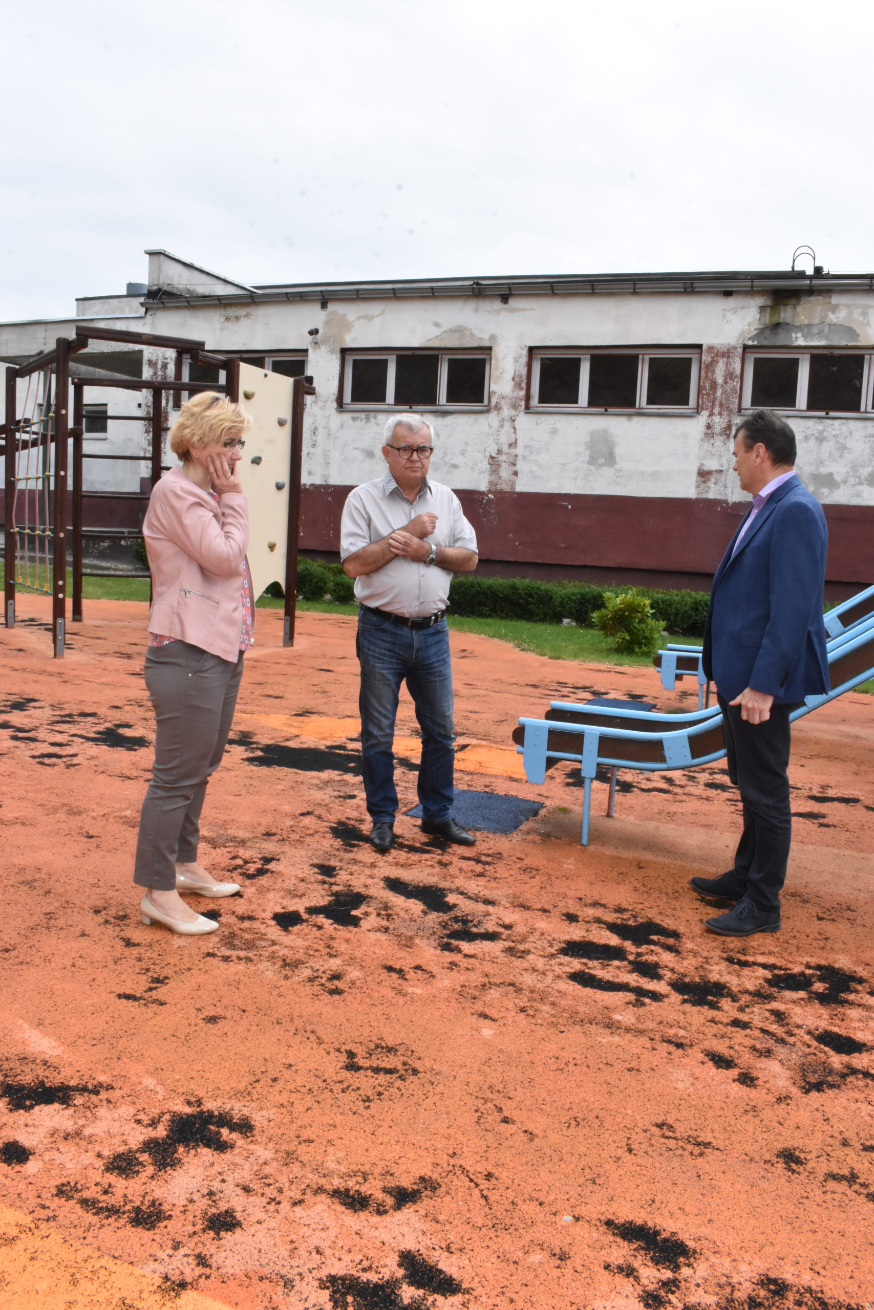 W trakcie spotkania burmistrz Andrzej Katarzyniec obejrzał również plac zabaw, który był remontowany, aby dzieci mogły z niego korzystać bezpiecznie. Uzupełniona została wytarta nawierzchnia. W najbliższym czasie planowana jest jednak wymiana całości, ponieważ dotychczasowa masa nie była nigdy uzupełniana i jest już zużyta. Burmistrz zadeklarował przekazanie środków na tel cel. Podobna deklaracja padła w związku z potrzebą budowy instalacji oddymiania na klatce schodowej w budynku. Wykonanie tej instalacji zaleca Straż Pożarna. Do momentu wykonania zadania nie ma możliwości wykorzystania części sal znajdujących się na ostatniej kondygnacji budynku. Środki takie zostaną zabezpieczone w budżecie szkoły w przyszłym roku.