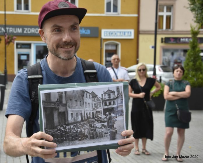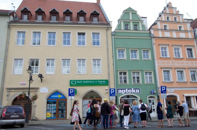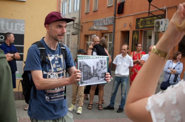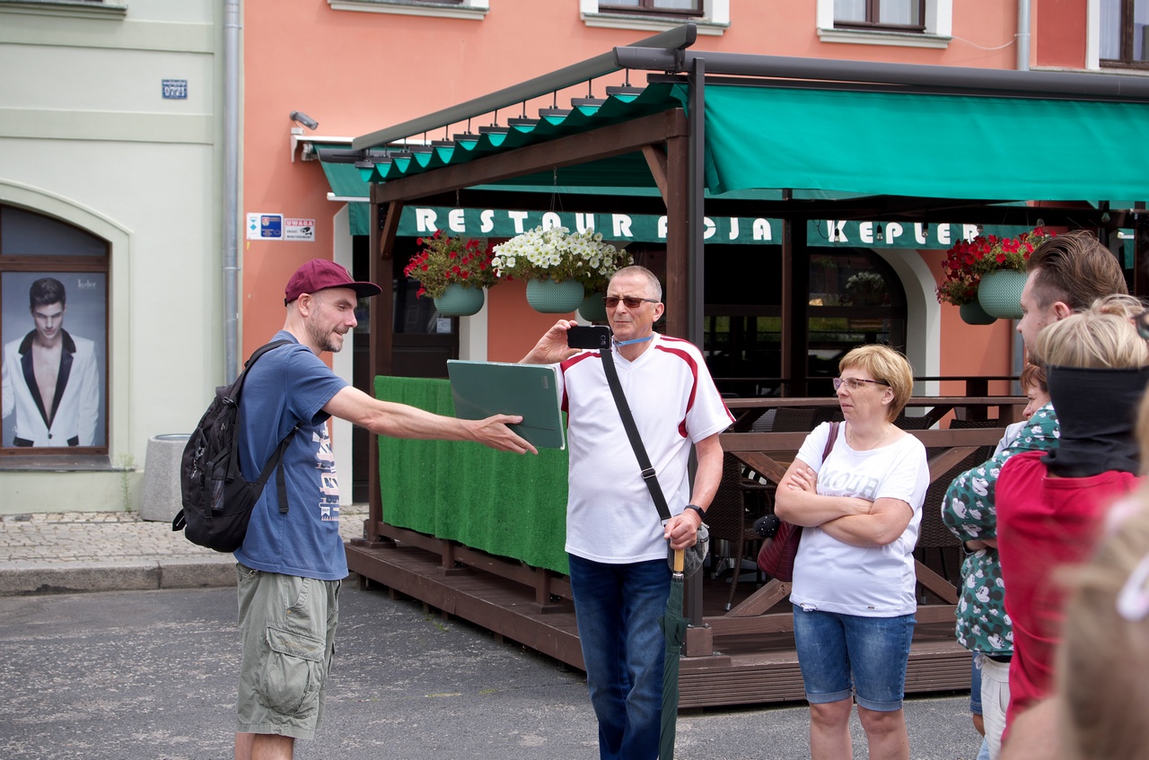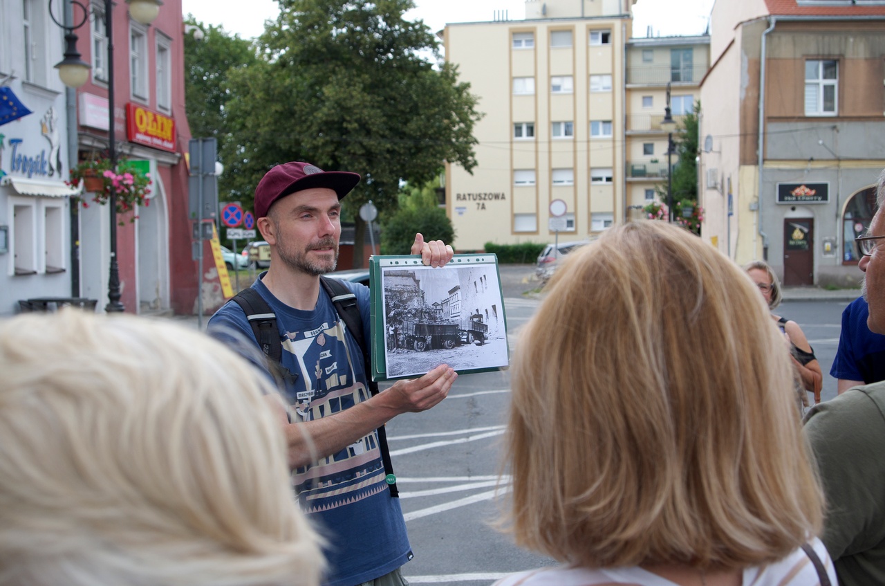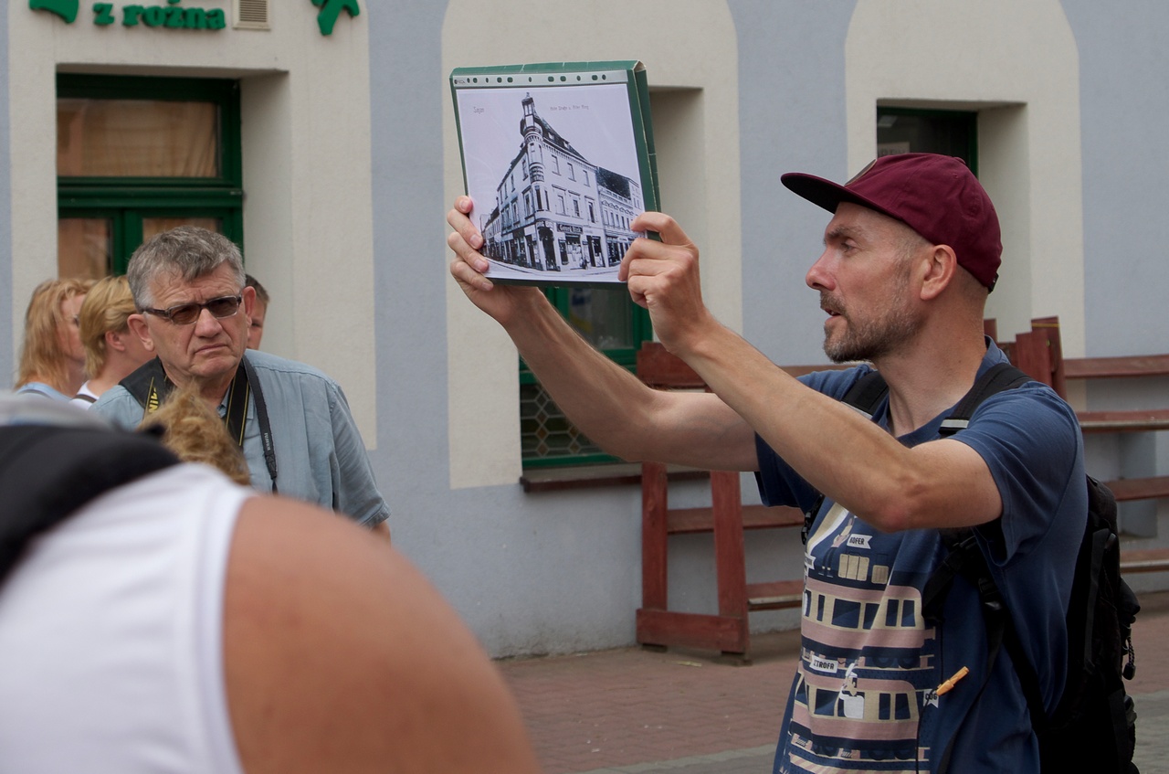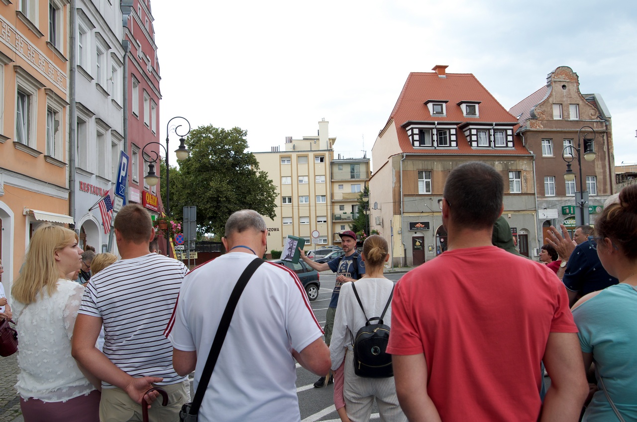 Podczas spaceru, obok narracji o nieistniejących konkretnych jednostkowych budynkach, takich jak hotele i restauracje, najstarsza kamienica miejska czy ratusz (dawny urząd miasta), ważna była też ogólna perspektywa. Mówiliśmy o urbanistyce miasta, o osi wschód–zachód na której zostały oparte dwa żagańskie Rynki, a także o tym, że w przedwojennym Żaganiu zapewne spełniony był ideał krótkich łańcuchów dostaw, czyli powszechna dostępność lokalnych produktów. Nie mogło zabraknąć opowieści o Baderstraße (ul. Łaziebnej), a przy tej okazji o żagańskich browarach oraz kamienicy Blaurocka. Próbowaliśmy wyobrazić sobie dawnych mieszkańców miasta, nie traktując ich przez pryzmat narodowości, lecz właśnie jako żaganian i żaganianki, jako tutejszych.