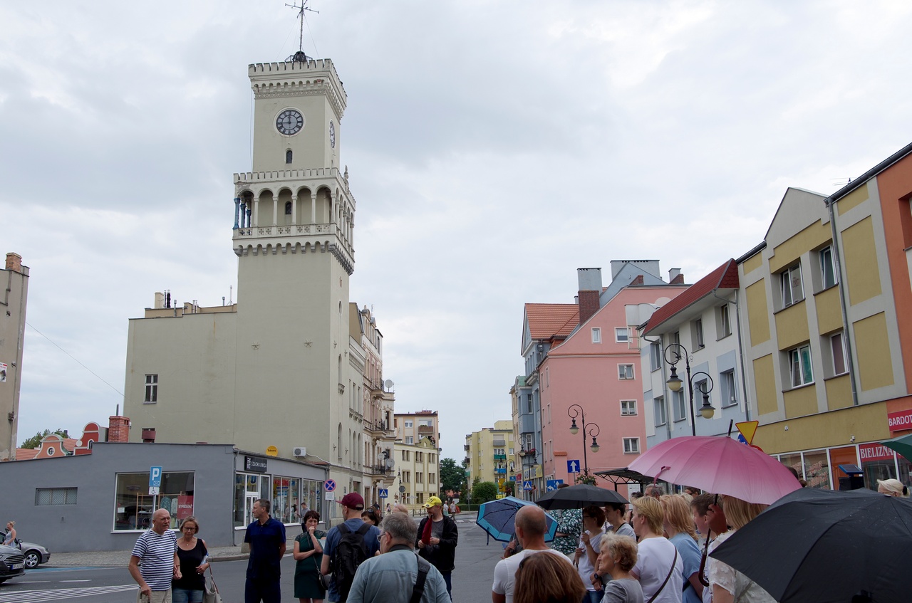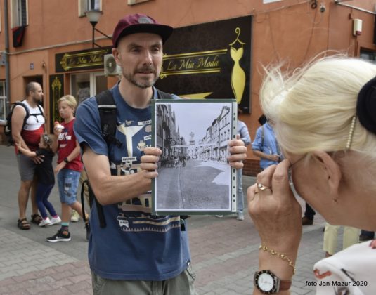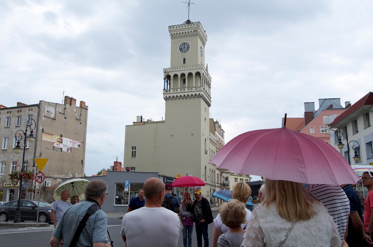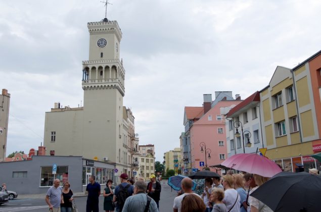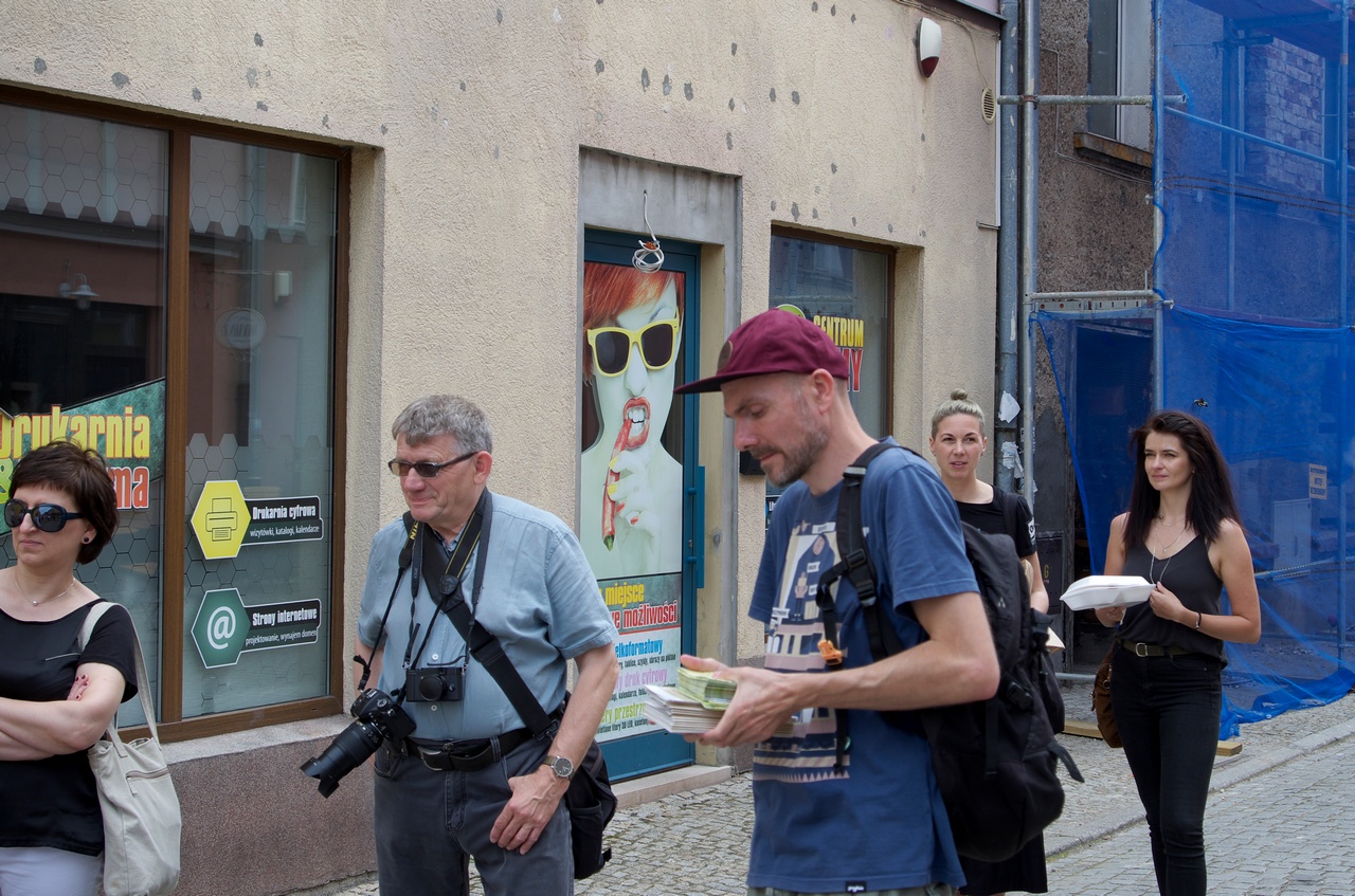 Spacer rozpoczął się przy fontannie na pl. Słowiańskim dosyć porywiście, gdyż nad miasto nadciągała nawałnica. Jednak natura okazała się łaskawa i jak to często w Żaganiu bywa, burza przeszła obok. Tak więc, mimo sporadycznego deszczu udało się przejść całą zaplanowaną trasę. Koncepcja spaceru polegała na tym, aby na kolejnych przystankach opowiedzieć skondensowaną do krótkich informacji historię danego miejsca, a następnie odkrywać nieistniejące na tle tego, co ocalało. Z pomocą przychodziły tu dawne pocztówki i powojenne archiwalne zdjęcia autorstwa m.in. Jana Mazura. Istotne znaczenie miała również wspólna praca z wyobraźnią. Społeczny proces, integracja i poczucie lokalnej wspólnoty to niezbędny element spacerów firmowanych przez Odkrywanie Żagania, stąd ten aspekt był niezwykle ważny.
