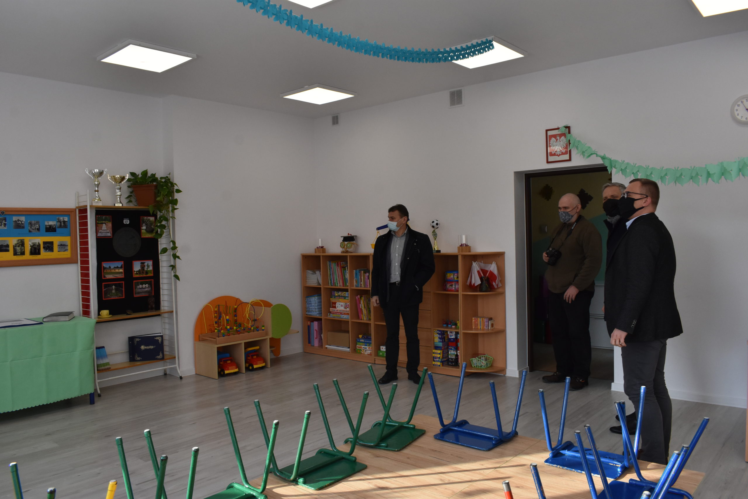 Dyrektor placówki Piotr Pałac zaprezentował nową salę zastępcy burmistrza Sebastianowi Kuleszy oraz naczelnikowi oświaty Mariuszowi Krugłemu.