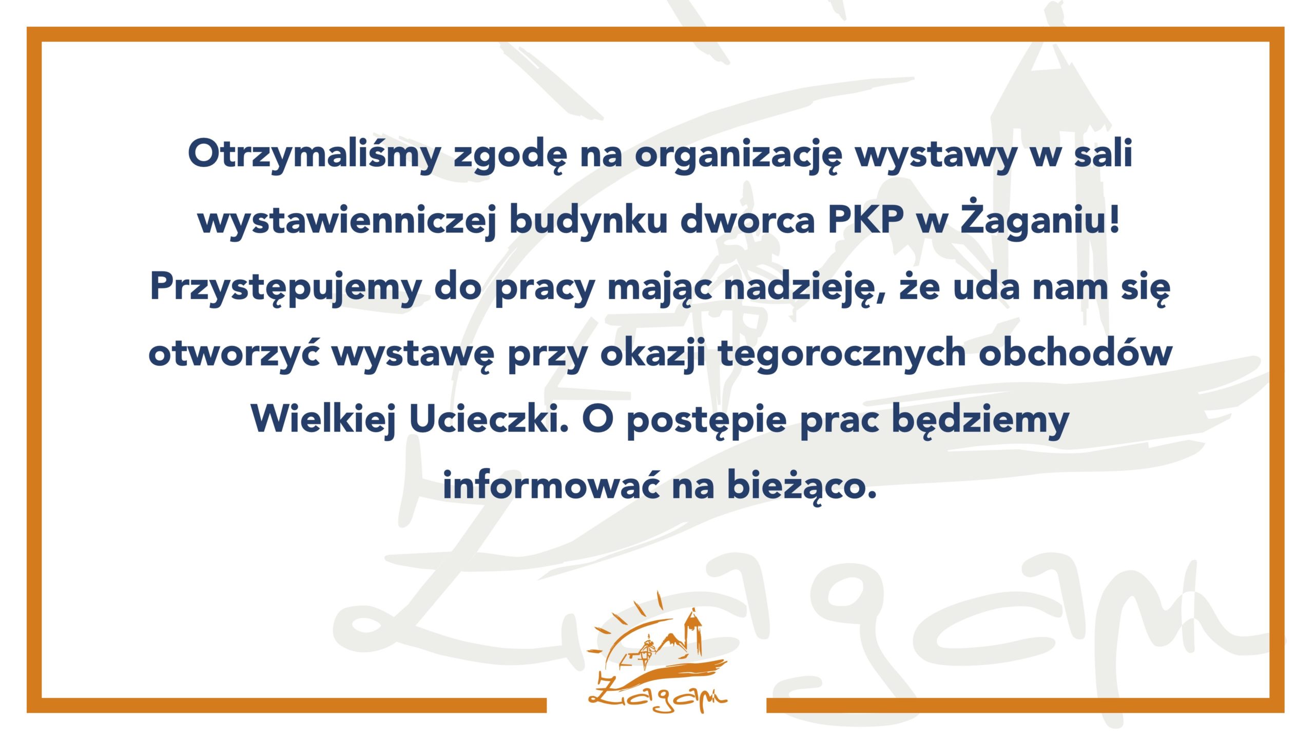 Otrzymaliśmy zgodę na organizację wystawy w sali wystawienniczej budynku dworca PKP w Żaganiu! Przystępujemy do pracy mając nadzieję, że uda nam się otworzyć wystawę przy okazji tegorocznych obchodów Wielkiej Ucieczki. O postępie prac będziemy informować na bieżąco.