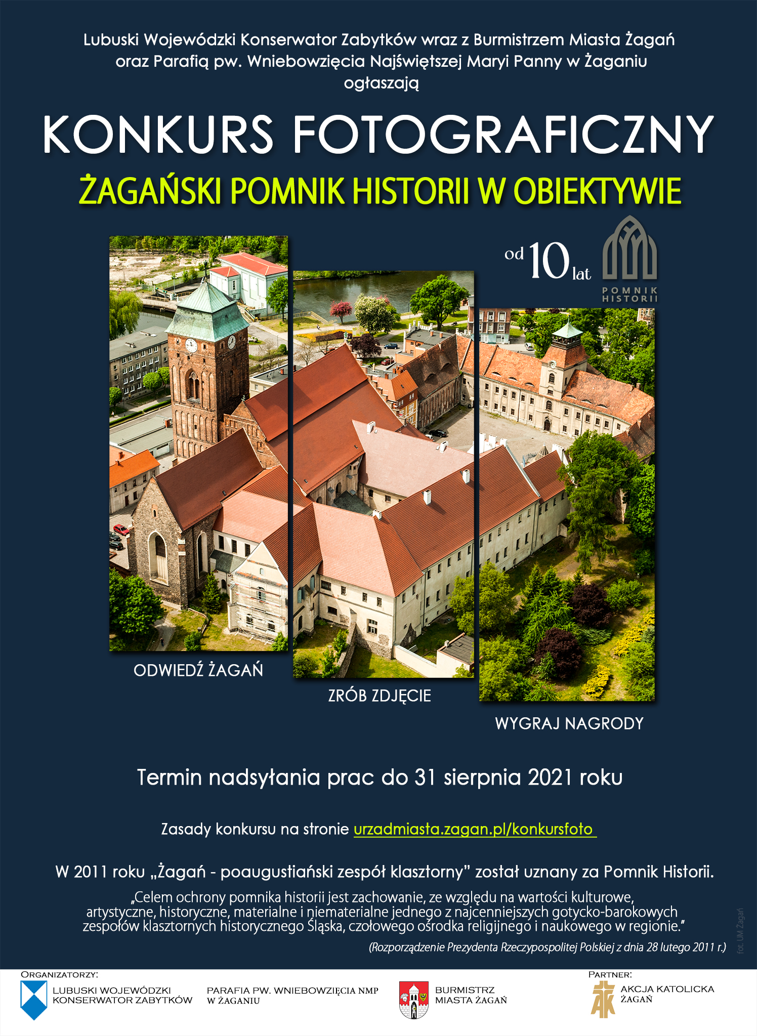 Lubuski Wojewódzki Konserwator Zabytków, Burmistrz Miasta Żagań oraz Parafia pw. Wniebowzięcia Najświętszej Maryi Panny w Żaganiu ogłaszają konkurs fotograficzny „Żagański Pomnik Historii w obiektywie”.