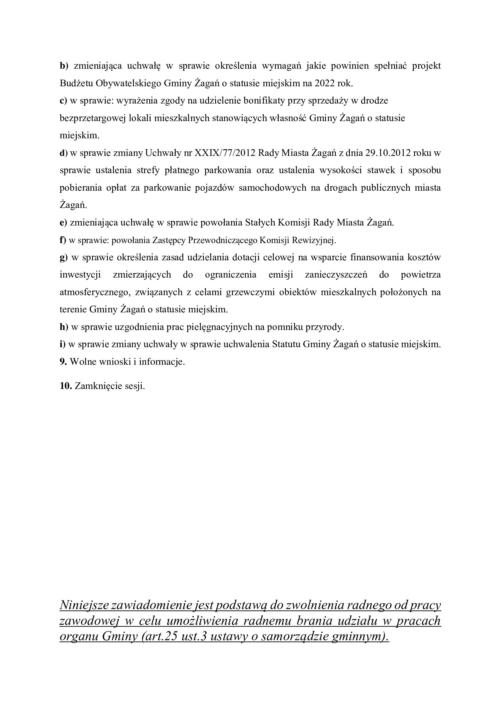 Zawiadomienie o zwołaniu XXX sesji Rady Miasta Żagań.