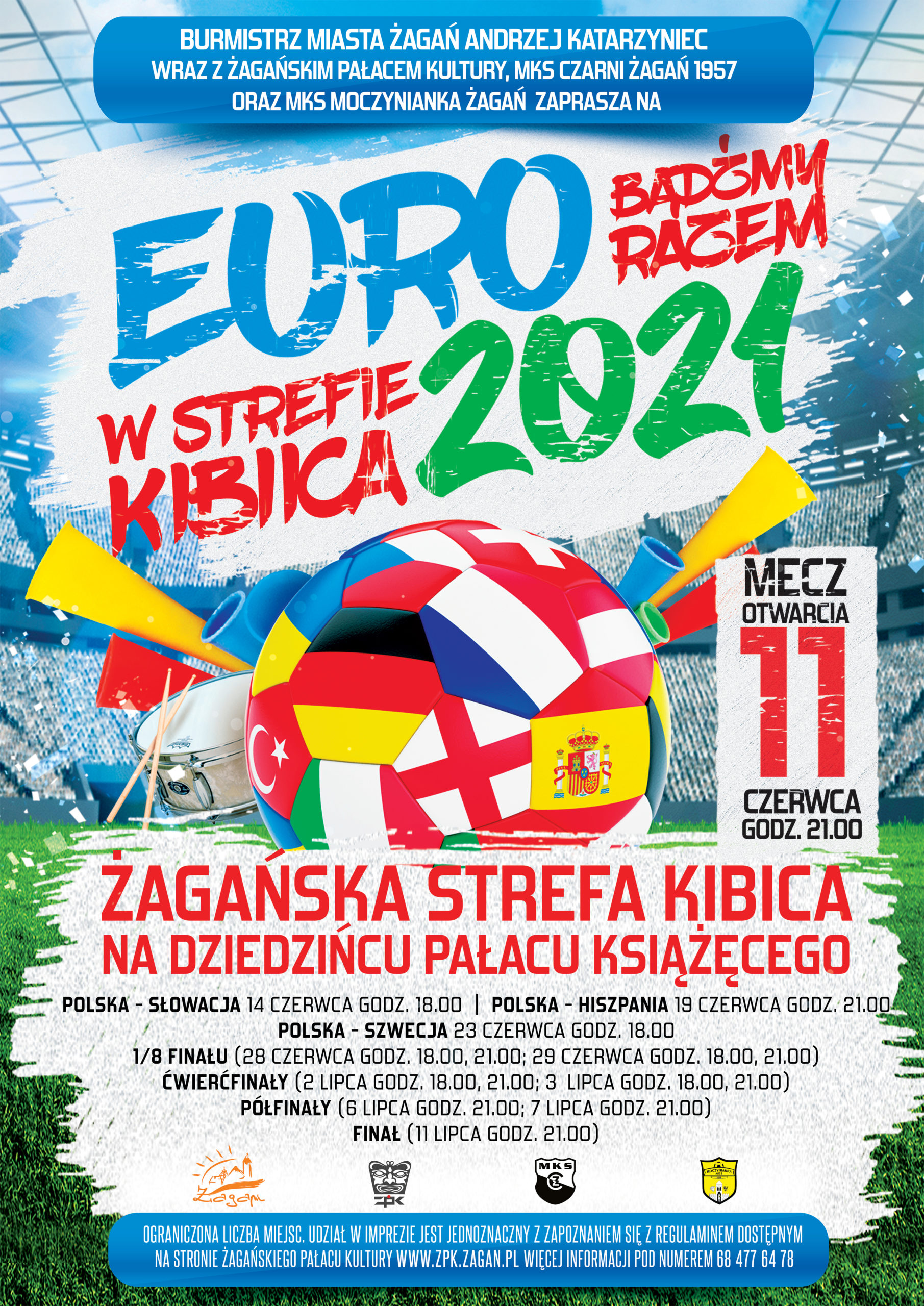 Już w piątek startuje Żagańska Strefa Kibica! Burmistrz Andrzej Katarzyniec wspólnie z miejskimi klubami sportowymi zaprasza do kibicowania zespołom walczącym o tytuł najlepszej drużyny piłkarskiej Europy! O bezpieczeństwo i oprawę wydarzenia zadba Żagański Pałac Kultury.