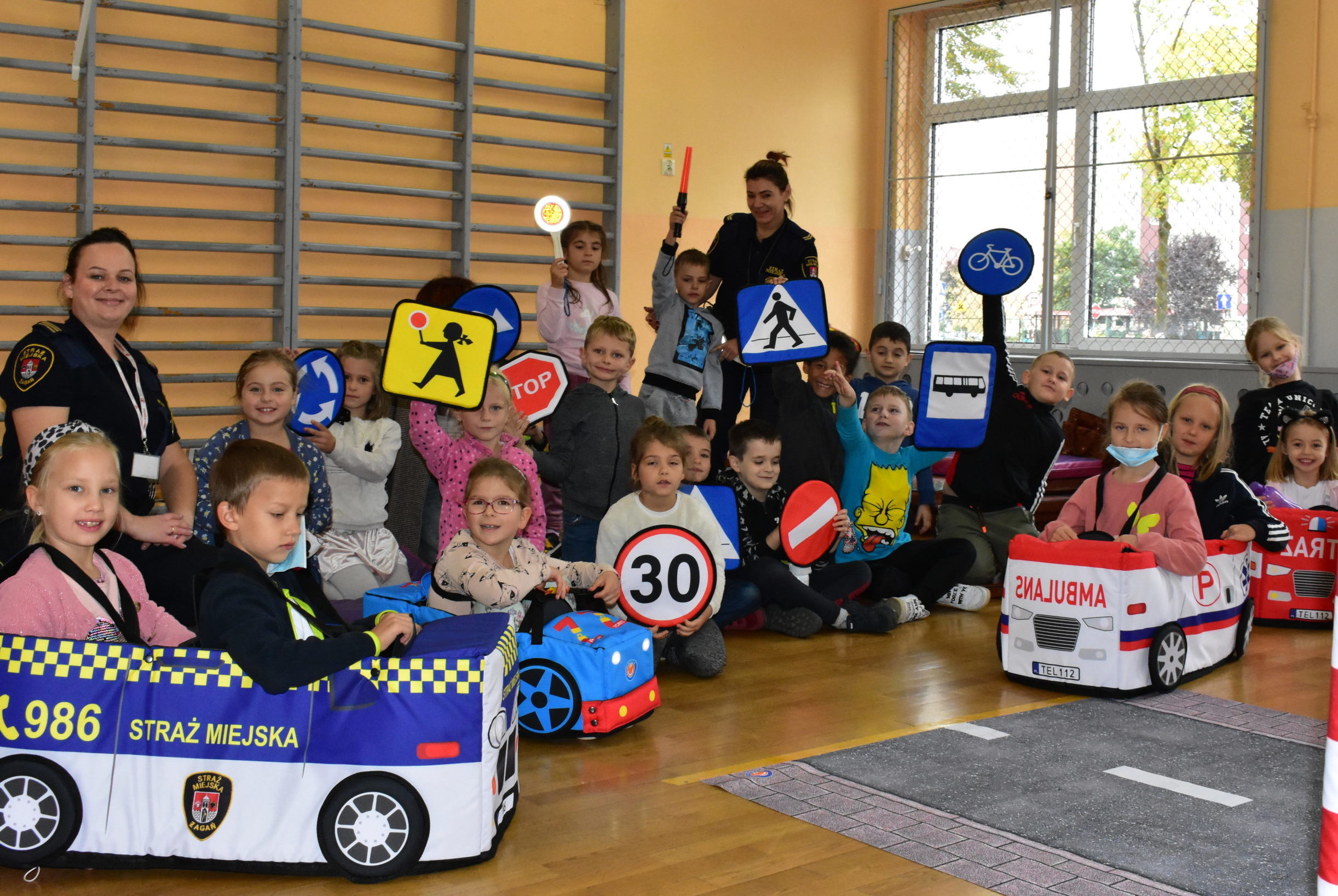 Strażniczki Miejskie prowadziły dzisiaj zajęcia dla dzieci z klas I-III w Publicznej Szkole Podstawowej nr 7, przybliżając najmłodszym zasady bezpiecznego zachowania się na drodze. Najpierw dzieci wysłuchały ważnych informacji dotyczących bezpiecznego przechodzenia przez ulicę, następnie poprzez zabawę ćwiczyły prawidłowe poruszanie się po jezdni. Najmłodsi poznali zasady pierwszeństwa obowiązujące na drodze, najważniejsze znaki drogowe oraz zasady korzystania z przejść dla pieszych z sygnalizacją świetlną. Na zakończenie każdy uczestnik zajęć otrzymał przywieszki odblaskowe, które zwiększają widoczność pieszych na drodze.