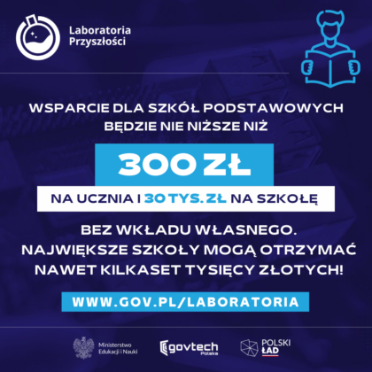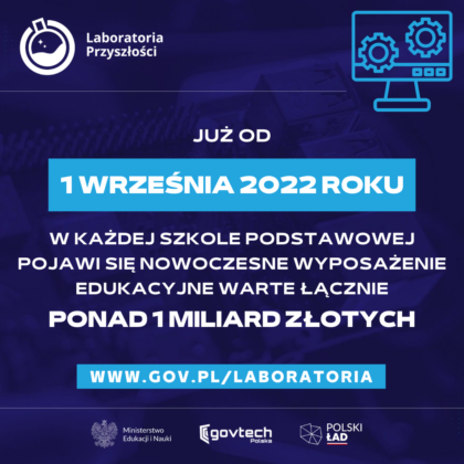 Zgodnie z założeniami rządowego programu do 1 września 2022 każda szkoła podstawowa zostanie wyposażona w sprzęt opisany w katalogu podstawowym “Laboratoriów Przyszłości”. Będzie to: