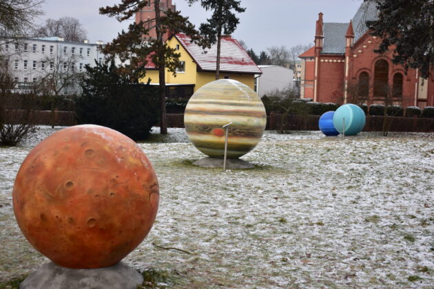 Wykonawcą żagańskich planet jest Robert Kowalski (Produkcja Betonów), projekt układu powstał w Biurze Projektów Zbigniewa Pachulskiego z Radzymina.