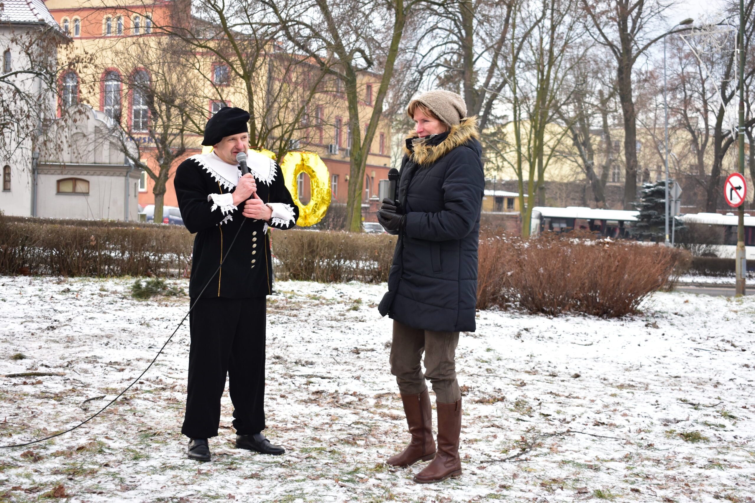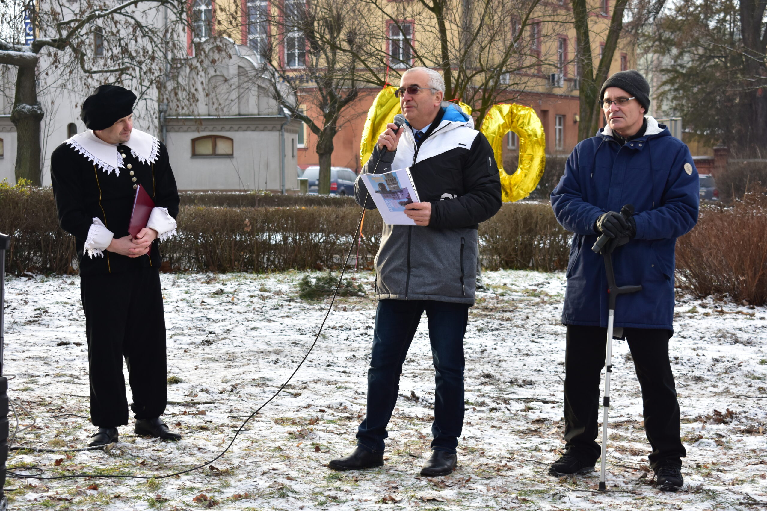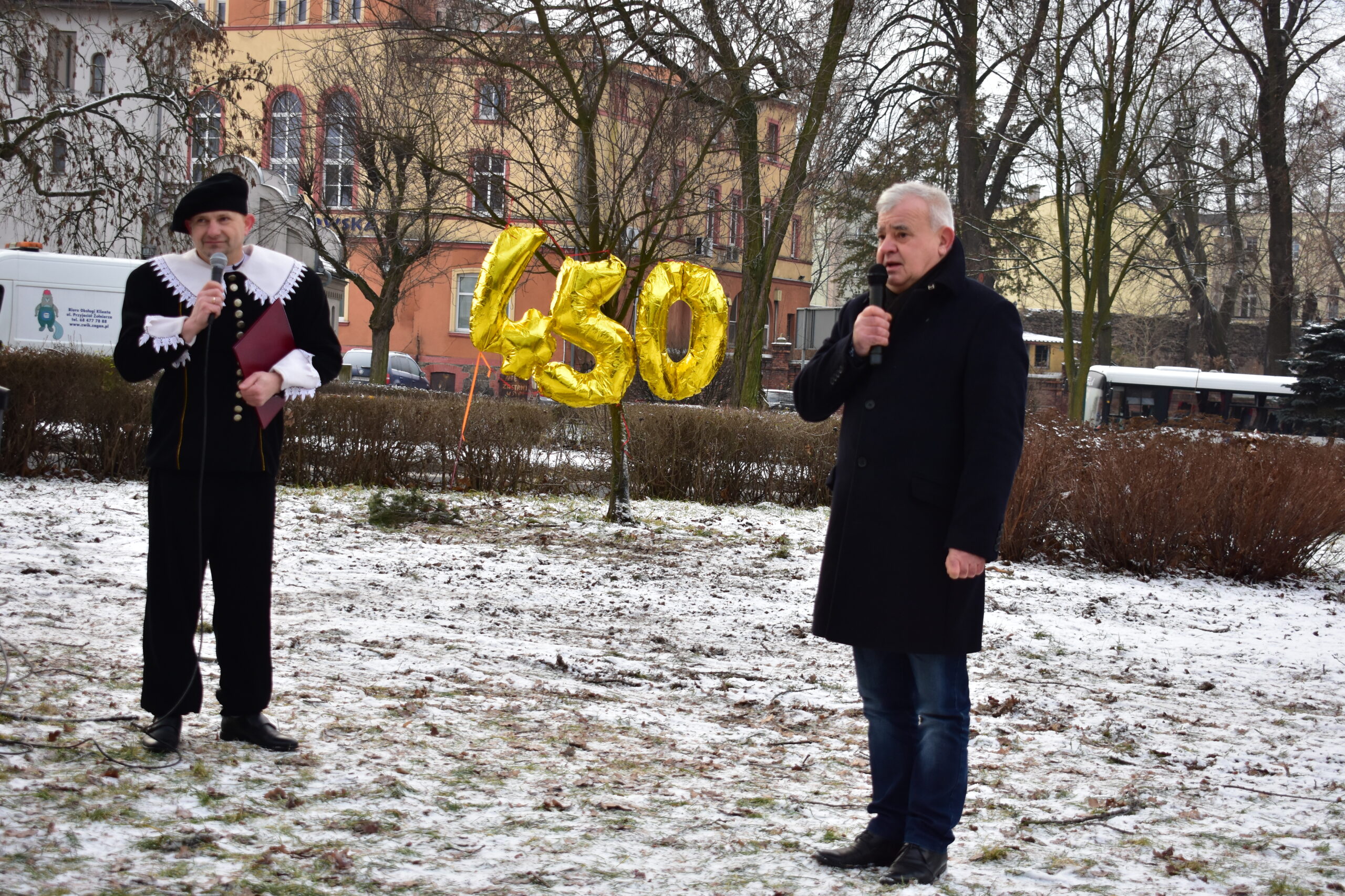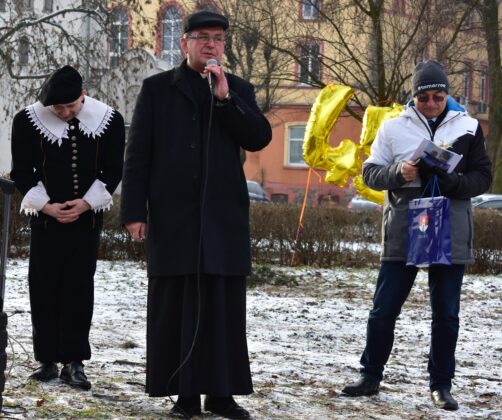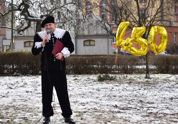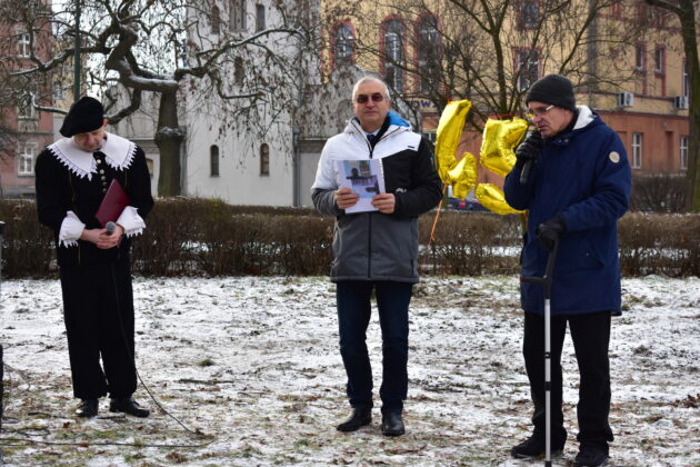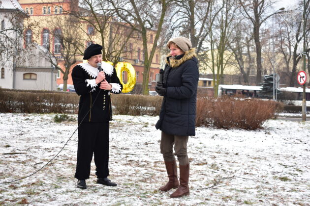 Gospodarz miasta, burmistrz Andrzej Katarzyniec przywitał przybyłych – panią Konserwator dr Barbarę Bielinis-Kopeć, dyrektorów żagańskich instytucji kultury, pasjonatów astronomii i nauki, dzieci oraz samego Astronoma. Burmistrz zapewnił, że w przyszłym roku cały teren na skwerze zostanie zagospodarowany, wzbogacony o nowe nasadzenia i elementy małej architektury.