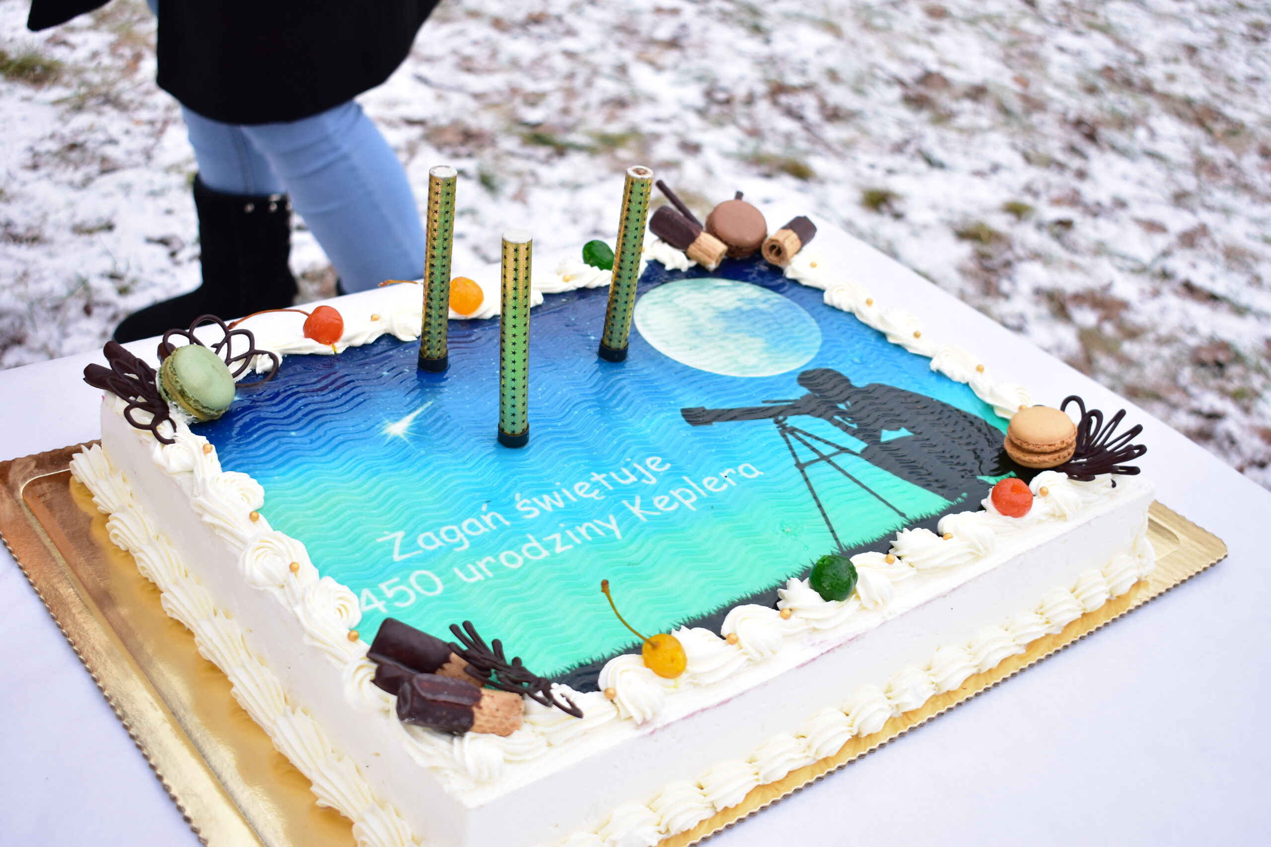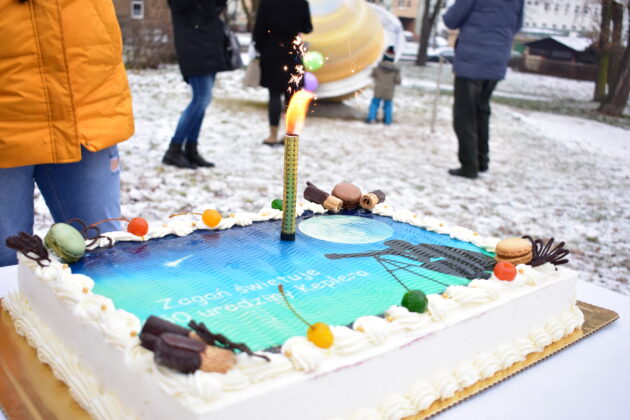 Rok Keplera w Żaganiu okazał się wyjątkowy również za sprawą cukiernika, który skomponował oryginalną recepturę ciastka sławiącego imię Astronoma. Specjalne podziękowania przekazano Panu Zbigniewowi Niedzieli za „keplerka” i słodkie zwieńczenie miejskiego Jubileuszu. Na zakończenie uroczystości nadszedł czas na prezenty. Przekazano Johannesowi wyjątkowy plenerowy układ planetarny, którego powstanie zawdzięczamy gospodarzowi Żagania oraz Lubuskiej Wojewódzkiej Konserwator Zabytków – pani doktor Barbarze Bielinis-Kopeć, dzięki której zaangażowaniu i wsparciu możemy dzisiaj cieszyć się z nowej instalacji, wzbogacającej ofertę turystyczną Żagania. Jak podkreśliła pani Konserwator, Żagań posiada wiele cennych zabytków materialnych. Szczególnie cenne jest jednak przypominanie o ludziach, którzy współtworzyli przez wieki charakter tego miejsca. Obecność Johannesa Keplera w Żaganiu zasługuje na przypominanie i celebrowanie. Dr Barbara Bielinis-Kopeć podkreśliła, iż bardzo istotna jest w tym kontekście praca, jaką podejmuje żagańska sekcja astronomiczna.