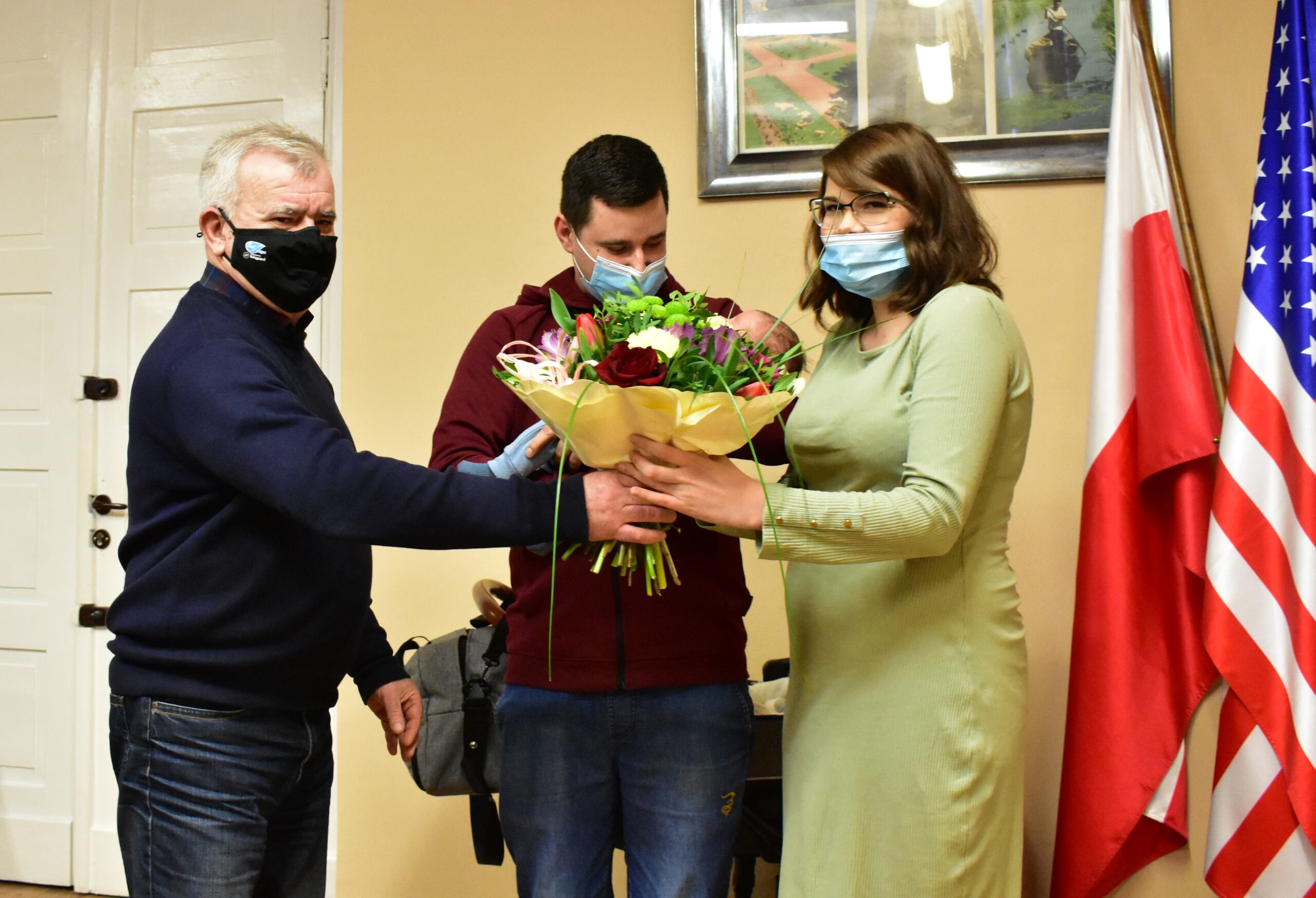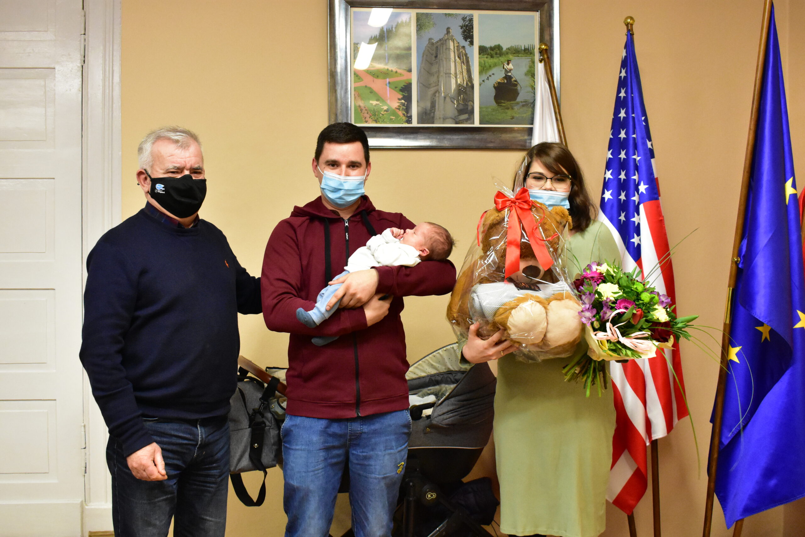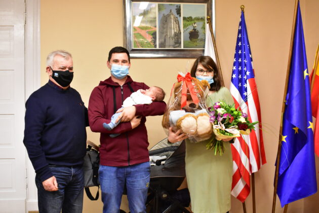 Gospodarz miasta pogratulował rodzicom tak wartościowego wkładu w życie miasta i wręczył drobne upominki dla dziecka oraz kwiaty dla dzielnej mamy.