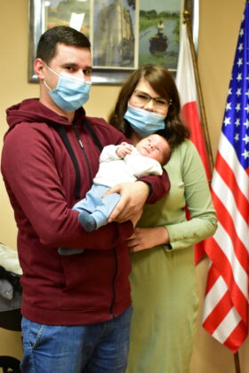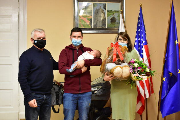 Burmistrz Andrzej Katarzyniec spotkał się z rodzicami pierwszego urodzonego w tym roku żaganianina. 3 stycznia 2022 roku do grona mieszkańców naszego miasta dołączył Franciszek Trembiński. Dziecko wkroczyło w świat z wagą 2,960 kg oraz 52 centymetrami długości. Jak zapewniają rodzice maluch jest spokojny i zdrowo rośnie.