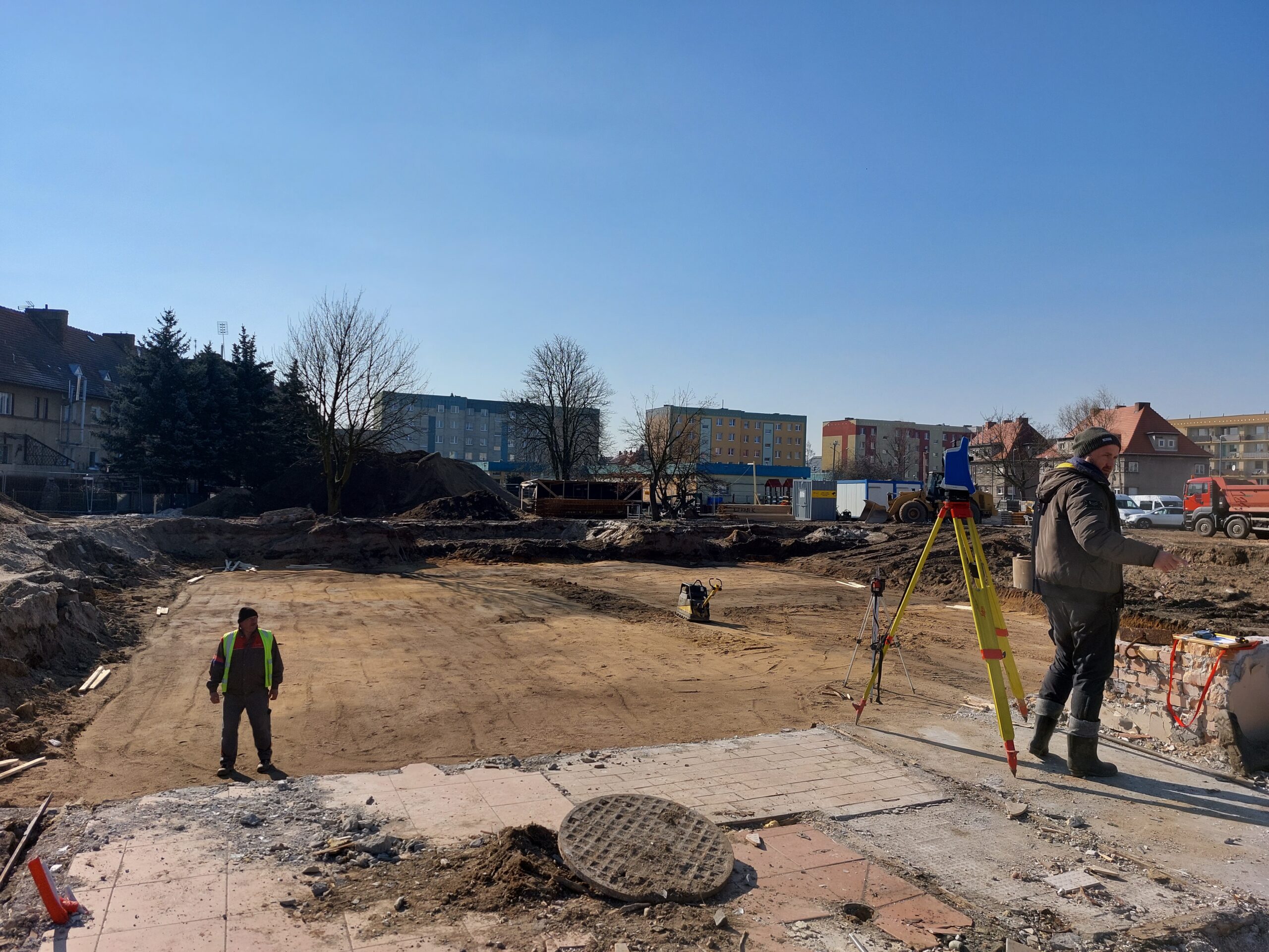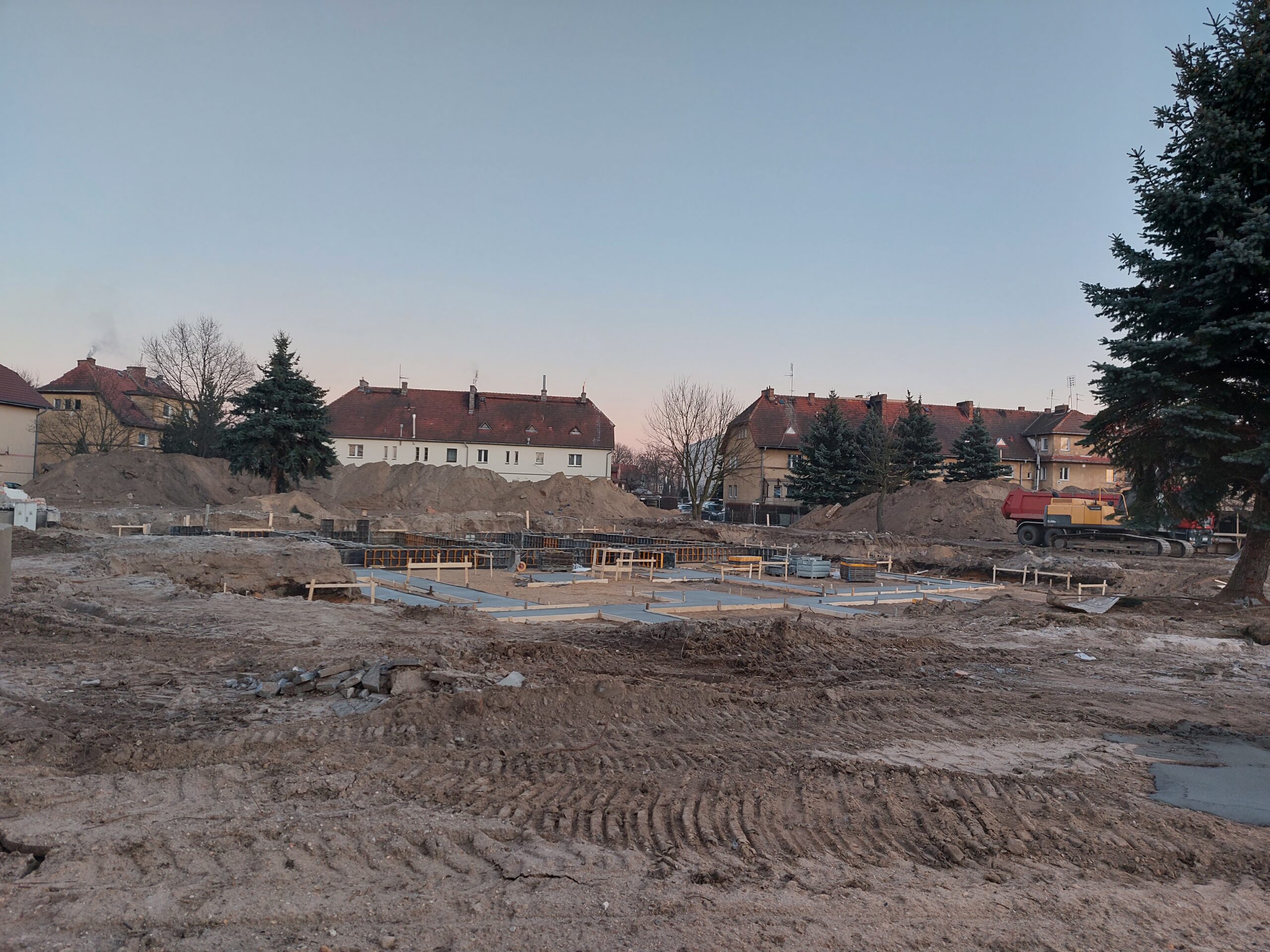 Jak postępują prace przy budowie nowego miejskiego przedszkola? W lutym rozebrano stary budynek, utylizując materiały pozostałe z rozbiórki. Na “czystym” terenie wykonano badania geologiczne i pomiary geodezyjne. Wykonawca stabilizuje i utwardza obecnie podłoże, na którym wylewane są właśnie fundamenty. Burmistrz Andrzej Katarzyniec spotkał się wczoraj z wykonawcą, który zapewnił, iż pomimo trudności z dostępnością materiałów budowlanych, inwestycja prowadzona jest planowo.