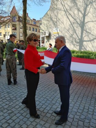 Pamiętajmy, że to nasi przodkowie 231 lat temu uchwalili pierwszą konstytucję w nowożytnej Europie – powiedział w trakcie uroczystości burmistrz Andrzej Katarzyniec. – Określana najwybitniejszym dziełem polskiego oświecenia Ustawa Rządowa z 3 maja 1791 roku wprowadziła trójpodział władzy, tolerancję wobec innych wyznań, samorząd w miastach i objęła opieką wszystkich mieszkańców ziem polskich. Wszystko po to, by państwo się odrodziło, a Polska stała się silniejszą. Konstytucja 3 maja pozostaje niezmiennie symbolem odważnego, nowatorskiego myślenia o kształcie Rzeczypospolitej. Pamiętajmy również o naszym biało-czerwonym sztandarze, który towarzyszył i towarzyszy Polakom we wszystkich najważniejszych chwilach – zarówno tych historycznych, jak i współczesnych.