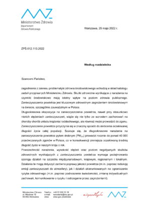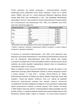 Ministerstwo Zdrowia zachęca do zapoznania się z dokumentem WHO oraz informuje, że pytania oraz sugestie w zakresie ochrony powietrza można kierować na specjalnie utworzony w tym celu adres mail: powietrze@mz.gov.pl