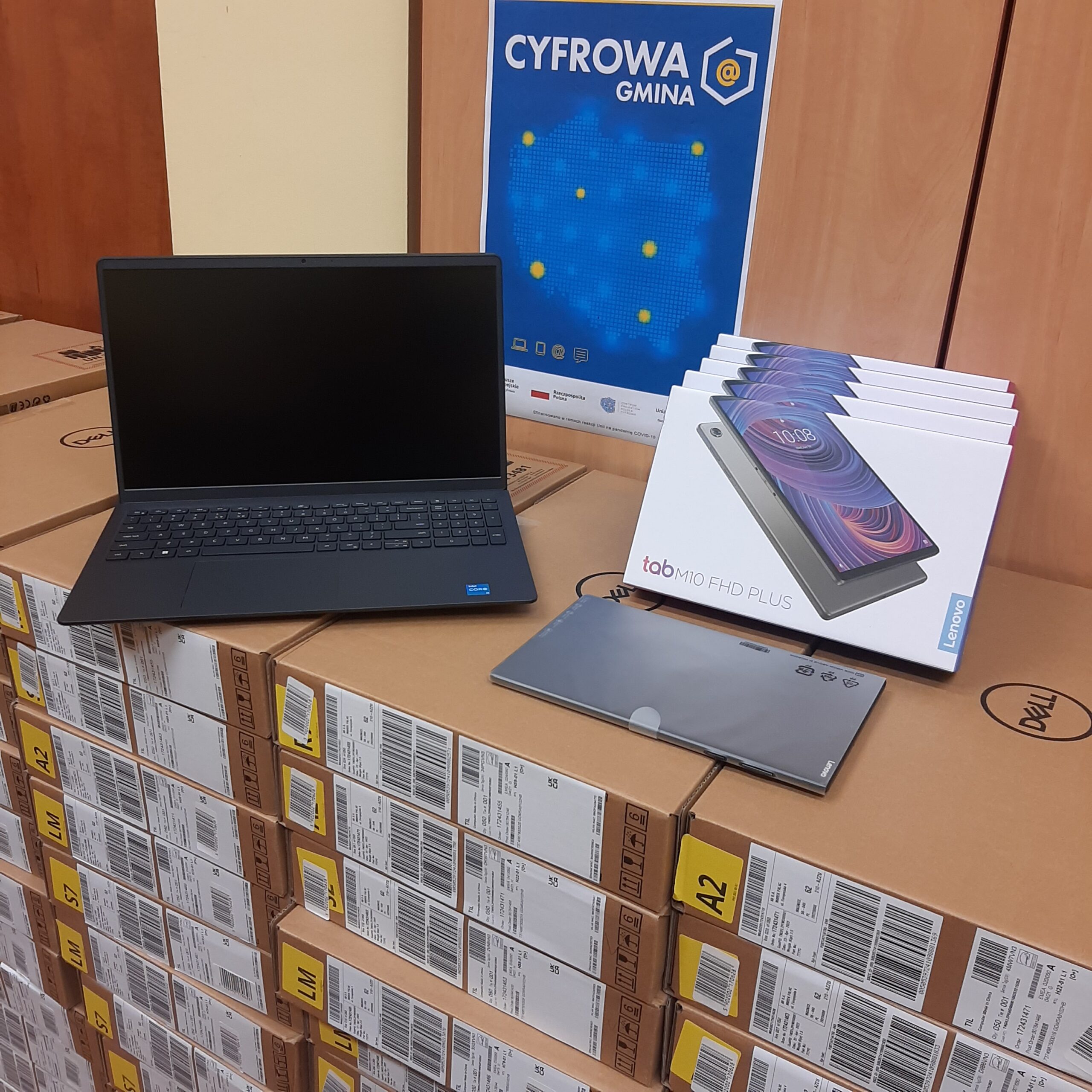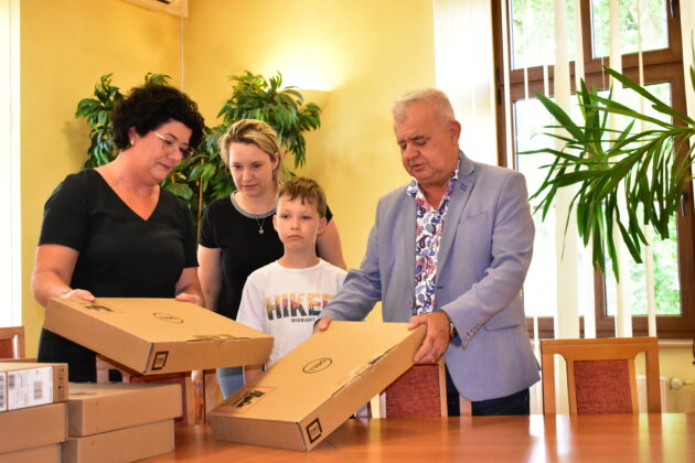 28 czerwca zawarliśmy mowę na realizację  zamówienia publicznego na zakup i dostawę sprzętu komputerowego wraz z oprogramowaniem w ramach zadania „Wsparcie dzieci z rodzin pegeerowskich w rozwoju cyfrowym – Granty PPGR”. Burmistrz Andrzej Katarzyniec podpisał dziś pierwsze umowy darowizny sprzętu dla rodzin spełniających zapisy programu i przekazał wybrane urządzenia dzieciom i ich opiekunom.