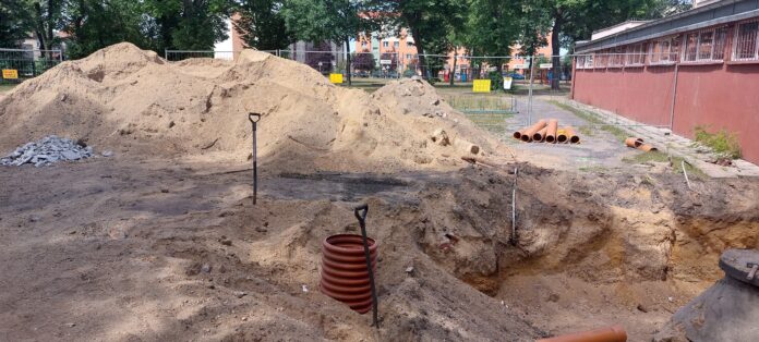 Rozpoczęła się przebudowa przyłącza kanalizacyjnego w Publicznej Szkole Podstawowej nr 7 w Żaganiu. Problemy z kanalizacją pojawiły się jeszcze w trakcie roku szkolnego. Pochodząca jeszcze z lat 60-tych żeliwna instalacja często ulegała zapychaniu. Podczas inspekcji kamerą okazało się, że przyłącze kanalizacyjne do szkoły zostało uszkodzone przez korzenie drzew rosnących na terenie szkoły, jest w bardzo złym stanie technicznym i wymaga wymiany. Wymiana przyłącza wiąże się koniecznością wykonania głębokich wykopów i czas wakacji, gdy w szkole nie ma uczniów, jest idealny na przeprowadzenie inwestycji. Nowe przyłącze zostanie wykonane  od budynku szkoły aż do ulicy Konopnickiej Zostaną również wykonane nowe podłączenia toalet od strony sali gimnastycznej. Na zlecenie magistratu prace prowadzi spółka ŻWiK. Koszt zadania wyniesie 38 575 złotych.