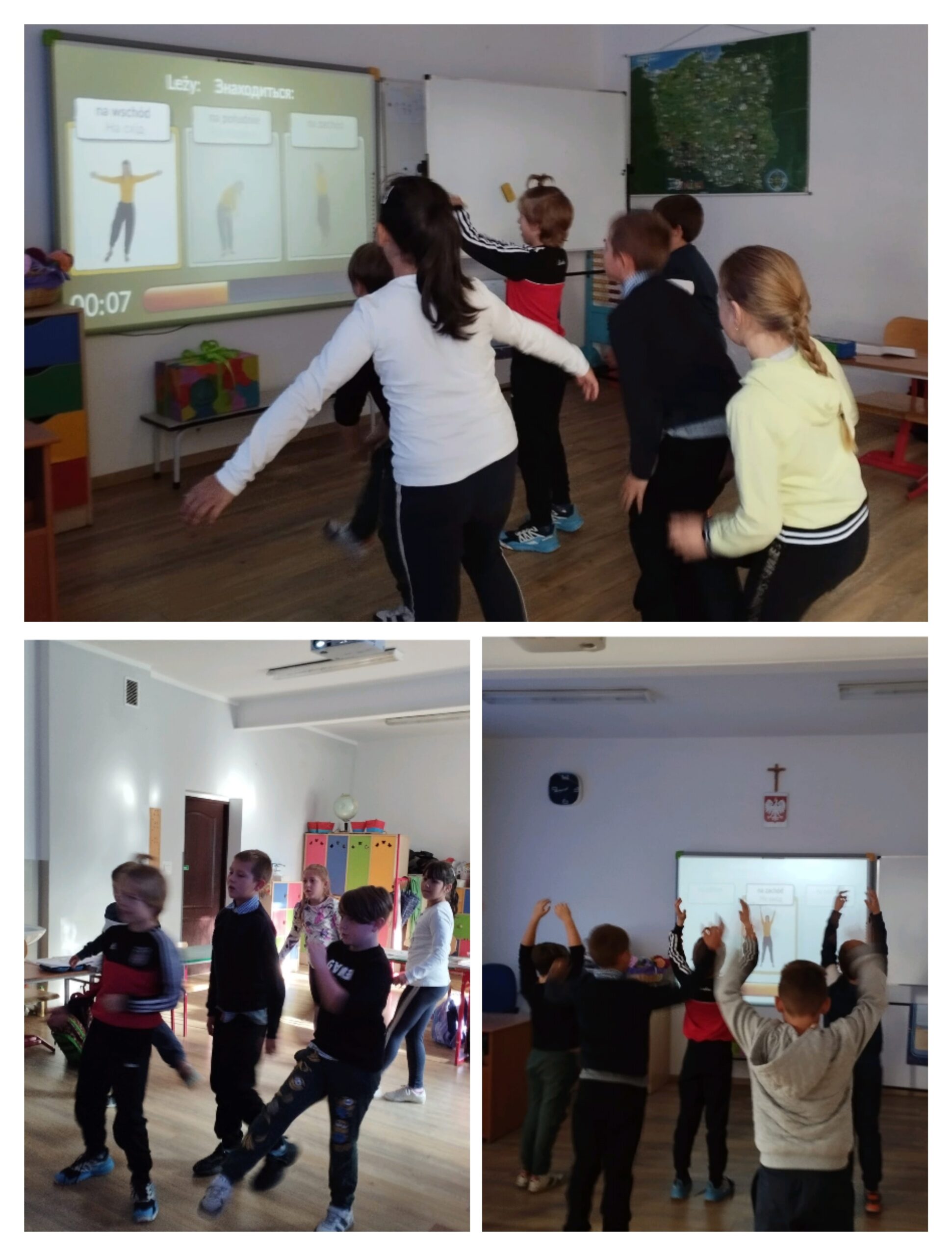 Tego dnia w żagańskiej “Trójce ” w klasach 1-3 rozpoczęto dzień z „Akademię Krokieta i Lamy Ruchowy Plan Lekcji”. Najmłodsi uczniowie dzień zaczęli od Porannego Bezruchu. Podczas zajęć dzieci zdobyły wiedzę o symbolach, kulturze polsko-ukraińskiej., aktywnie brali udział w ruchowym quizie. Następne zajęcia to wspólne zabawy w sali gimnastycznej z wykorzystaniem ruchowych kart pracy.