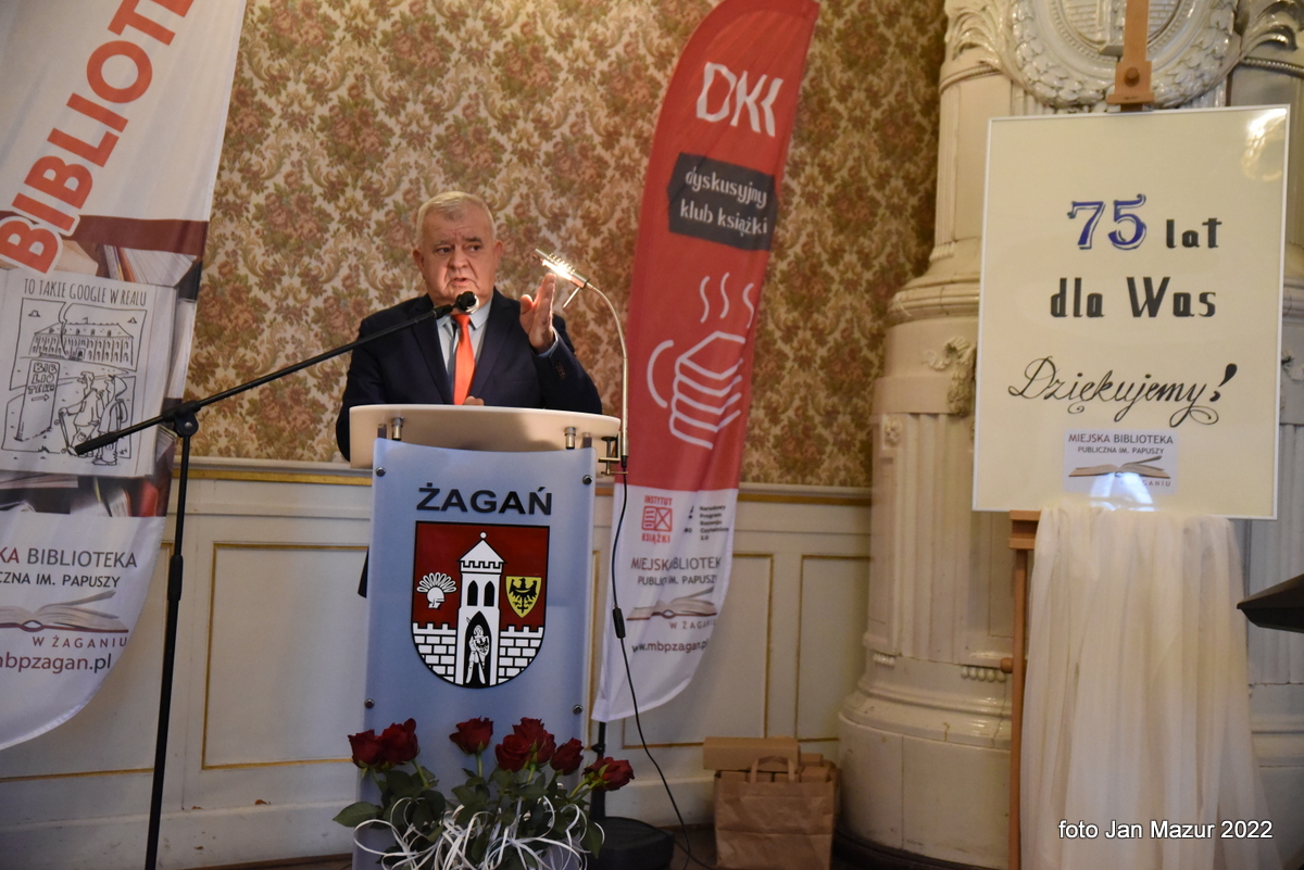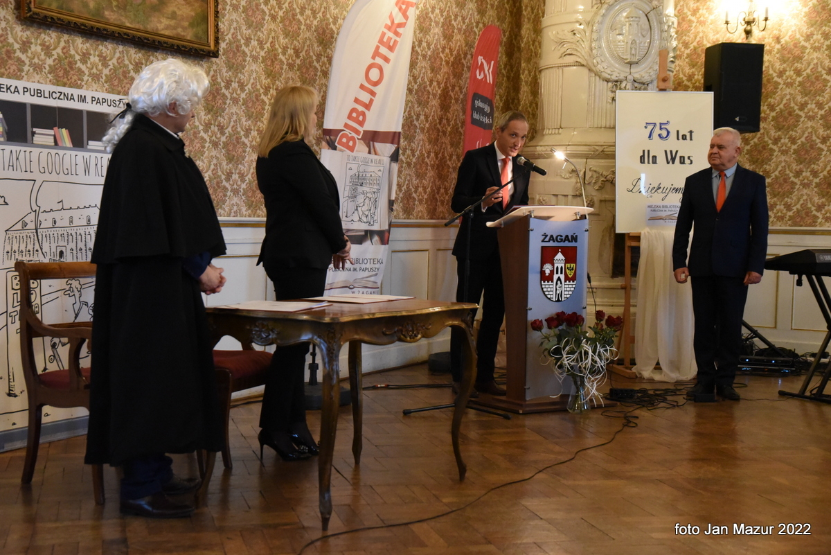 17 listopada 2022 roku Miejska Biblioteka Publiczna im. Papuszy obchodziła 75 urodziny. Z tej okazji zaproszono gości na wyjątkową uroczystość. W konwencji rozprawy sądowej zaprezentowano dorobek i historię żagańskiej Książnicy. Biblioteka została oskarżona o nadmierną aktywność, darmowe rozdawanie książek, gier i e-booków, o handel lokalami w mieście i zmiany lokalizacji. W obronie Książnicy jako pierwszy stanął burmistrz Andrzej Katarzyniec, wnosząc o uniewinnienie placówki. Biblioteka jest niewinna stawianych zarzutów. Co więcej ciągle się rozwija, planując rozwój i nową przestrzeń dla swoich pomysłów. Zastępca burmistrza Sebastian Kulesza dodatkowo podkreślił, że to bardzo dobrze, że dzieci są zmuszane do czytania. Jednym z takich dzieci był on, który jako dziecko trafił do biblioteki i zasypany został książkami. W podobnym duchu wypowiadali się inni obecni. Jedynie radna Małgorzata Klorek wniosła o zamknięcie biblioteki z całym zespołem. Ironicznie postulowała zamknąć książnicę, bo zdecydowanie za dużo robi w mieście.