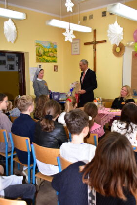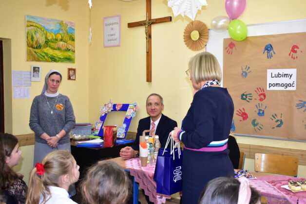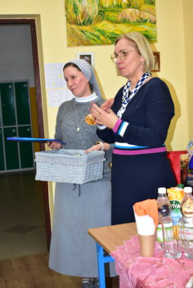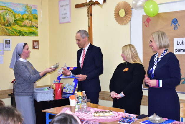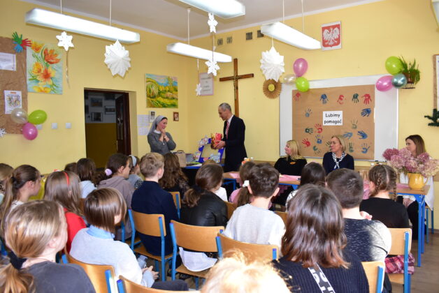8 grudnia 2022 roku w Zespole Szkolno-Przedszkolnym obchodzono Dzień Wolontariusza, który stał się okazją do podziękowań dla młodzieży, która aktywnie działa w Szkolnym Kole Caritas prowadzonym przez siostrę Martę. Spotkanie stało się okazją do podziękowań dla młodych wolontariuszy oraz dla samej koordynatorki, której podziękowania za wyjątkową pracę z młodzieżą złożyła Lubuska Kurator Oświaty Ewa Rawa. Pani kurator podziękowała uczniom za bezinteresowną aktywność na rzecz innych, która pozwala otworzyć się na potrzeby drugiego człowieka. Szczególne podziękowania złożyła na ręce opiekunki koła – siostry Marty, której pracę dostrzeżono również w Gorzowie Wielkopolskim. Zastępca burmistrza Sebastian Kulesza pogratulował młodzieży przeprowadzonych akcji oraz opowiedział o własnych doświadczeniach wolontariackich. Gratulacje za aktywność i podziękowanie za pracę złożyła zebranym również dyrektor szkoły Bogumiła Kowalik.