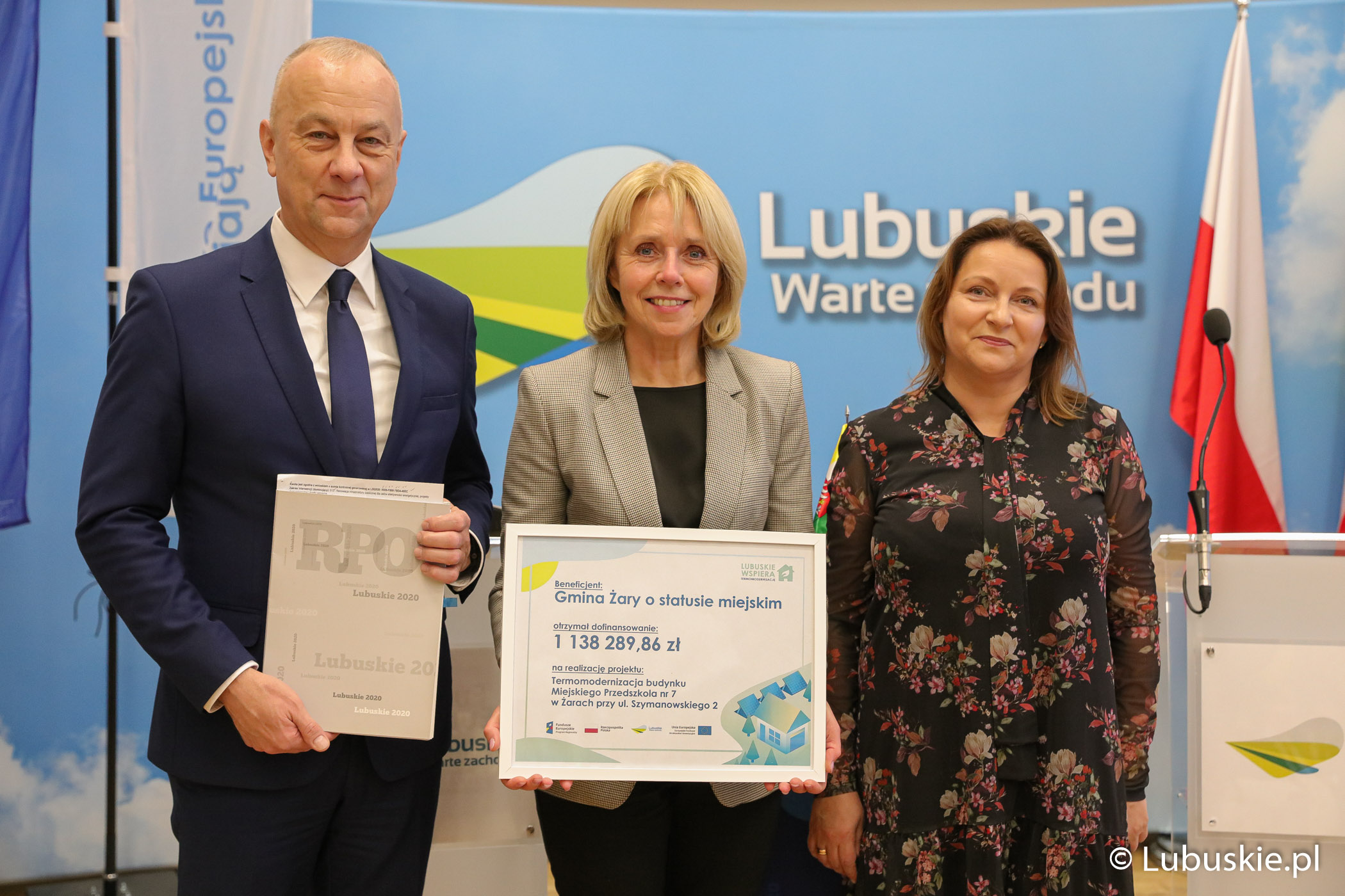 W Urzędzie Marszałkowskim Województwa Lubuskiego w Zielonej Górze podpisano dziś umowy na realizację projektów w ramach RPO-L2020 z programu REACT-EU. Umowy podpisali samorządowcy z Żar, Żagania, Sulechowa i Niegosławic. – Wartość dofinansowań wynosi od ponad 1 do 6 mln zł – powiedział członek zarządu województwa lubuskiego Marcin Jabłoński. Burmistrz Andrzej Katarzyniec oraz skarbnik Teresa Łapczyńska podpisali dokument, zgodnie z którym Żagań otrzyma ponad 3 miliony złotych na kompleksową termomodernizację budynków Przedszkola Miejskiego nr 3 oraz filii Przedszkola Miejskiego nr 5 w Żaganiu!